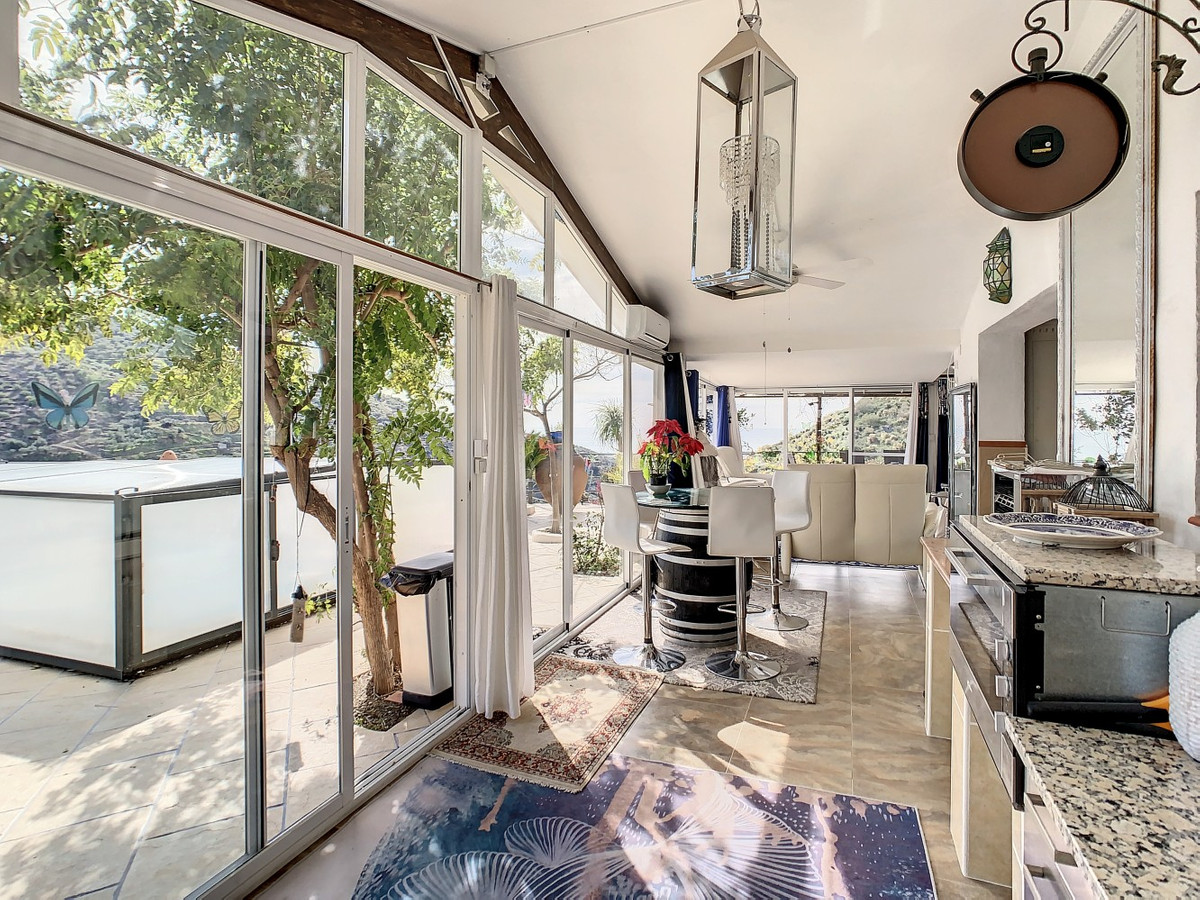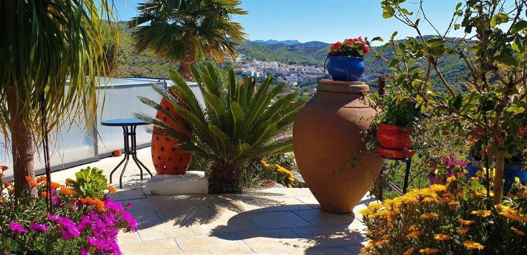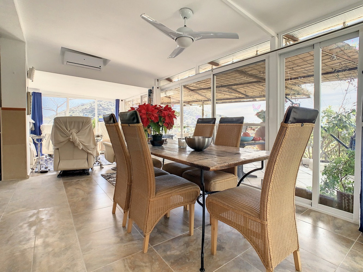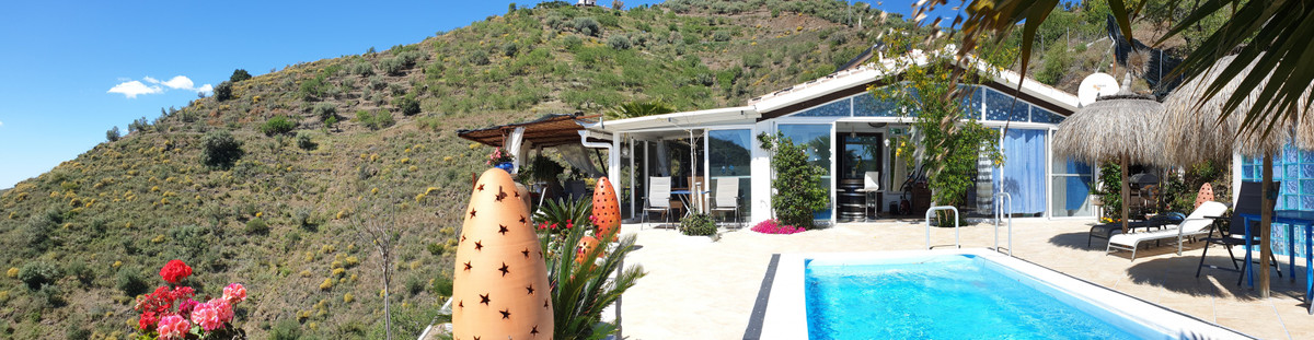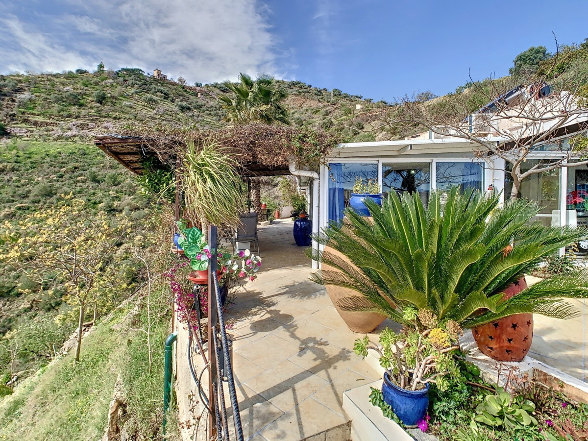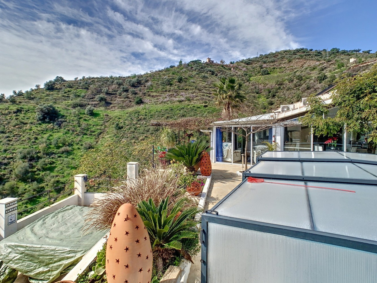 Bent u op zoek naar een grote villa met een verwarmd zwembad, perfect verscholen bijna op de top van een berg, midden in de natuur met een adembenemend uitzicht over de vallei tot aan de zee en het dorp Arenas? Dan is dit misschien wel precies wat u zoekt. Bij de ingang van het perceel vindt u een overdekte parkeerplaats voor minimaal 6 auto's en een werkplaats. Vanaf hier stapt u op een brede veranda die het hele perceel omringt. In het midden van het huis, dat volledig gelijkvloers is, vindt u een kantoor, 3 slaapkamers, 2 badkamers (waarvan één en-suite), 2 keukens, een open barbecueplek, een grote woon-/eetkamer en meer zitgedeeltes met uitzicht naar buiten via openslaande deuren. Rondom de veranda bevinden zich diverse privé zit-/zonneplekken waar het heerlijk vertoeven is. Hier vindt u ook het verwarmde zwembad, palmbomen, een slaapkamer aan de buitenkant en een doorgang naar kleine romantische bankjes met een fantastisch uitzicht rondom de voet van het perceel. Er is ook een buitenkeuken. Deze woning is goed afgewerkt en van alle gemakken voorzien. Perfect voor mensen die van comfort en privacy houden. We zijn blij u binnenkort deze droomwoning te kunnen presenteren, persoonlijk of via een virtuele bezichtiging. Want deze wereld, die is uniek - net als onze Axarquía. In Andalusië. Aan de Costa del Sol. Hier, aan de zonnige kant van het leven...