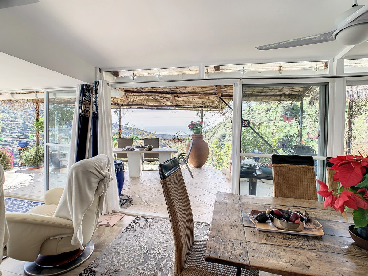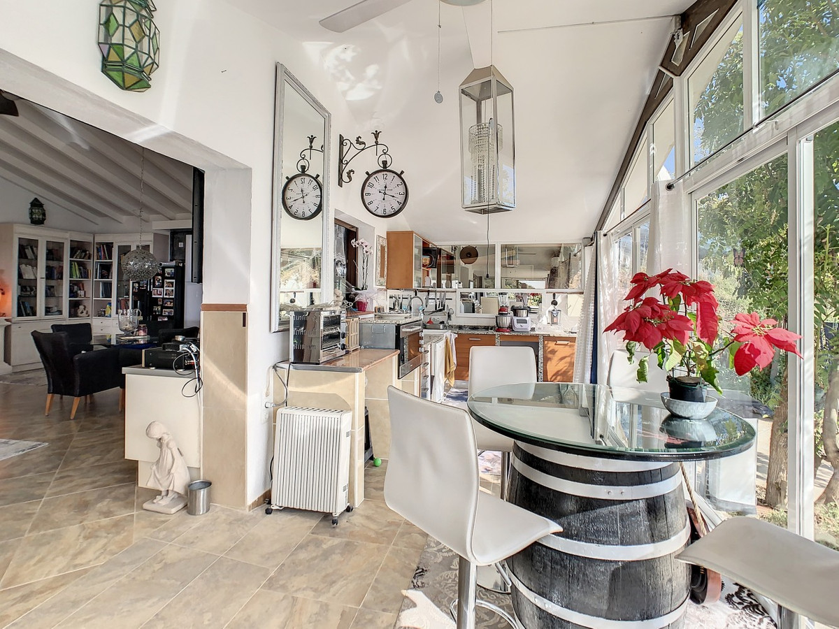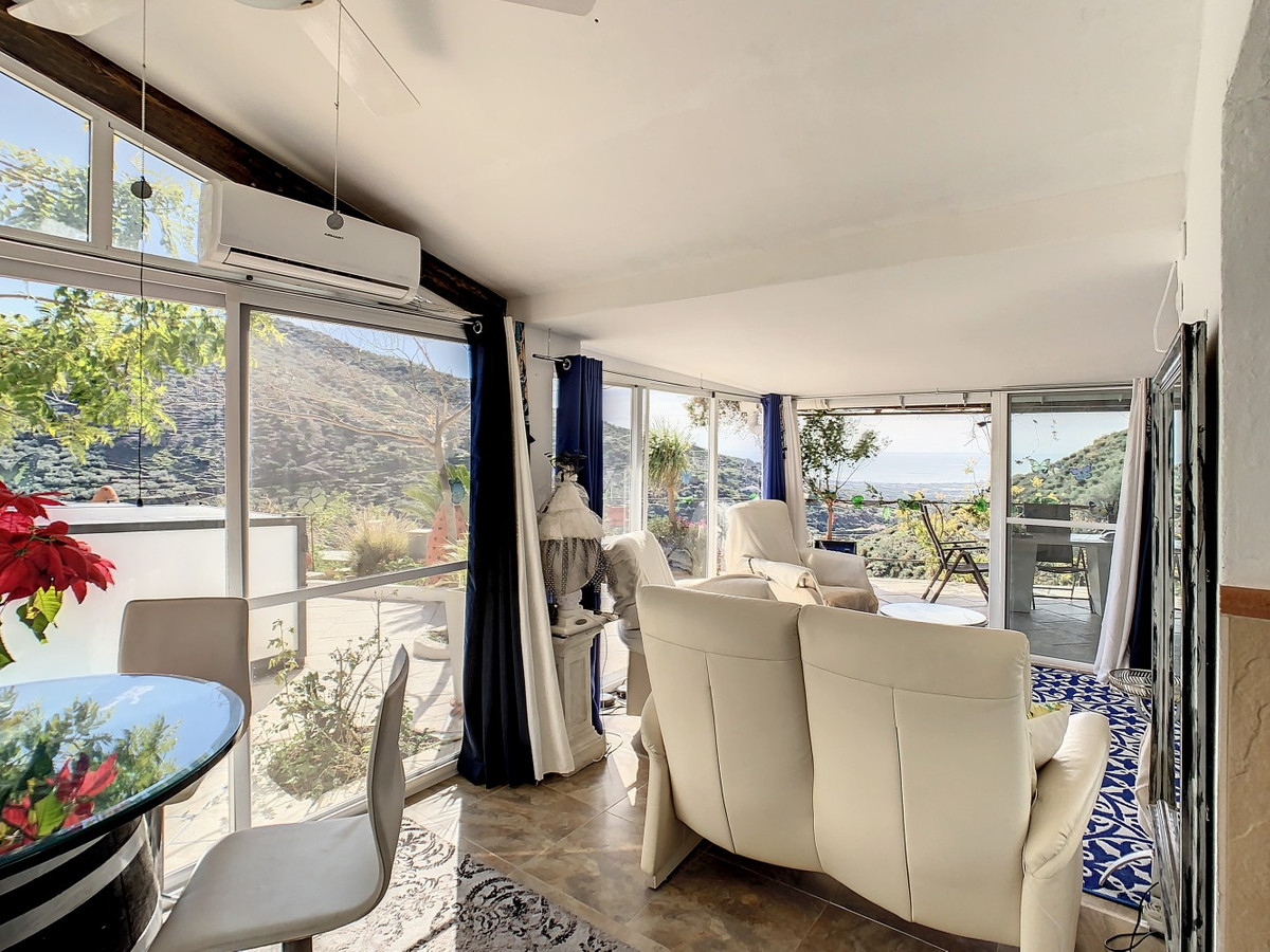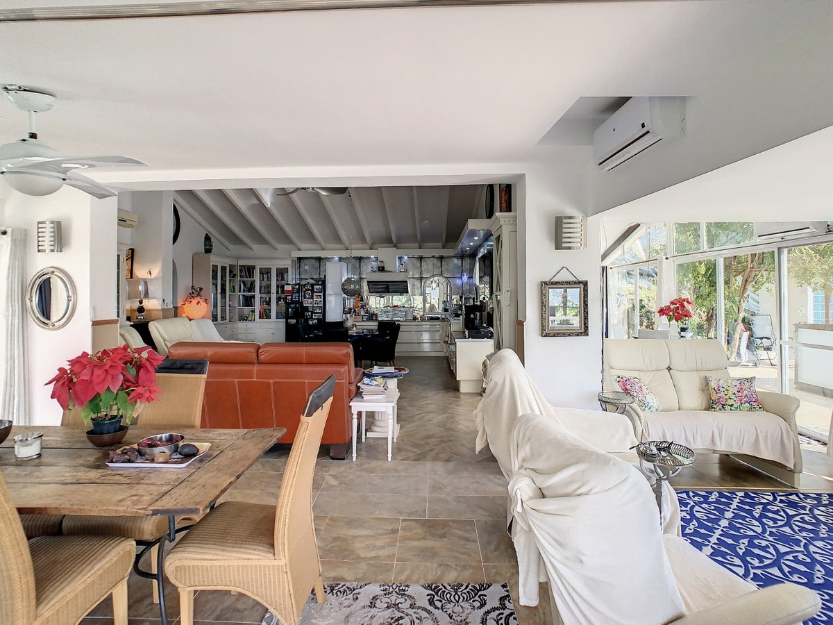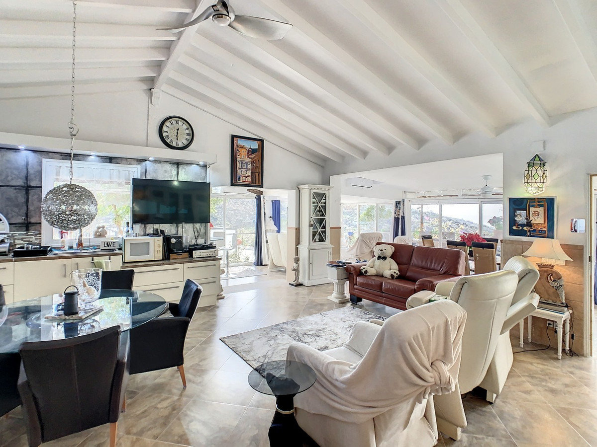Bent u op zoek naar een grote villa met een verwarmd zwembad, perfect verscholen bijna op de top van een berg, midden in de natuur met een adembenemend uitzicht over de vallei tot aan de zee en het dorp Arenas? Dan is dit misschien wel precies wat u zoekt. Bij de ingang van het perceel vindt u een overdekte parkeerplaats voor minimaal 6 auto's en een werkplaats. Vanaf hier stapt u op een brede veranda die het hele perceel omringt. In het midden van het huis, dat volledig gelijkvloers is, vindt u een kantoor, 3 slaapkamers, 2 badkamers (waarvan één en-suite), 2 keukens, een open barbecueplek, een grote woon-/eetkamer en meer zitgedeeltes met uitzicht naar buiten via openslaande deuren. Rondom de veranda bevinden zich diverse privé zit-/zonneplekken waar het heerlijk vertoeven is. Hier vindt u ook het verwarmde zwembad, palmbomen, een slaapkamer aan de buitenkant en een doorgang naar kleine romantische bankjes met een fantastisch uitzicht rondom de voet van het perceel. Er is ook een buitenkeuken. Deze woning is goed afgewerkt en van alle gemakken voorzien. Perfect voor mensen die van comfort en privacy houden. We zijn blij u binnenkort deze droomwoning te kunnen presenteren, persoonlijk of via een virtuele bezichtiging. Want deze wereld, die is uniek - net als onze Axarquía. In Andalusië. Aan de Costa del Sol. Hier, aan de zonnige kant van het leven...