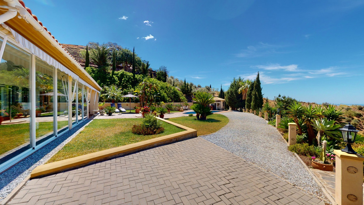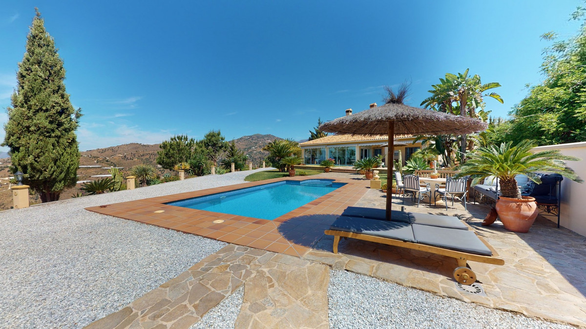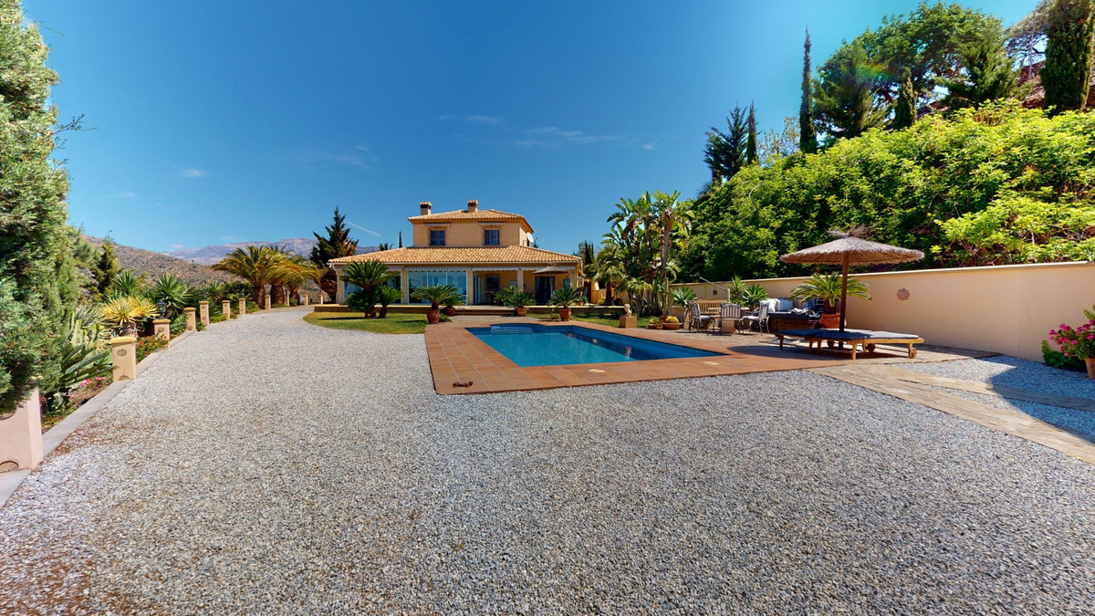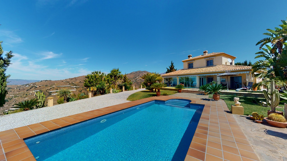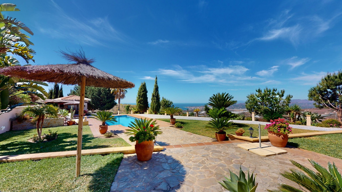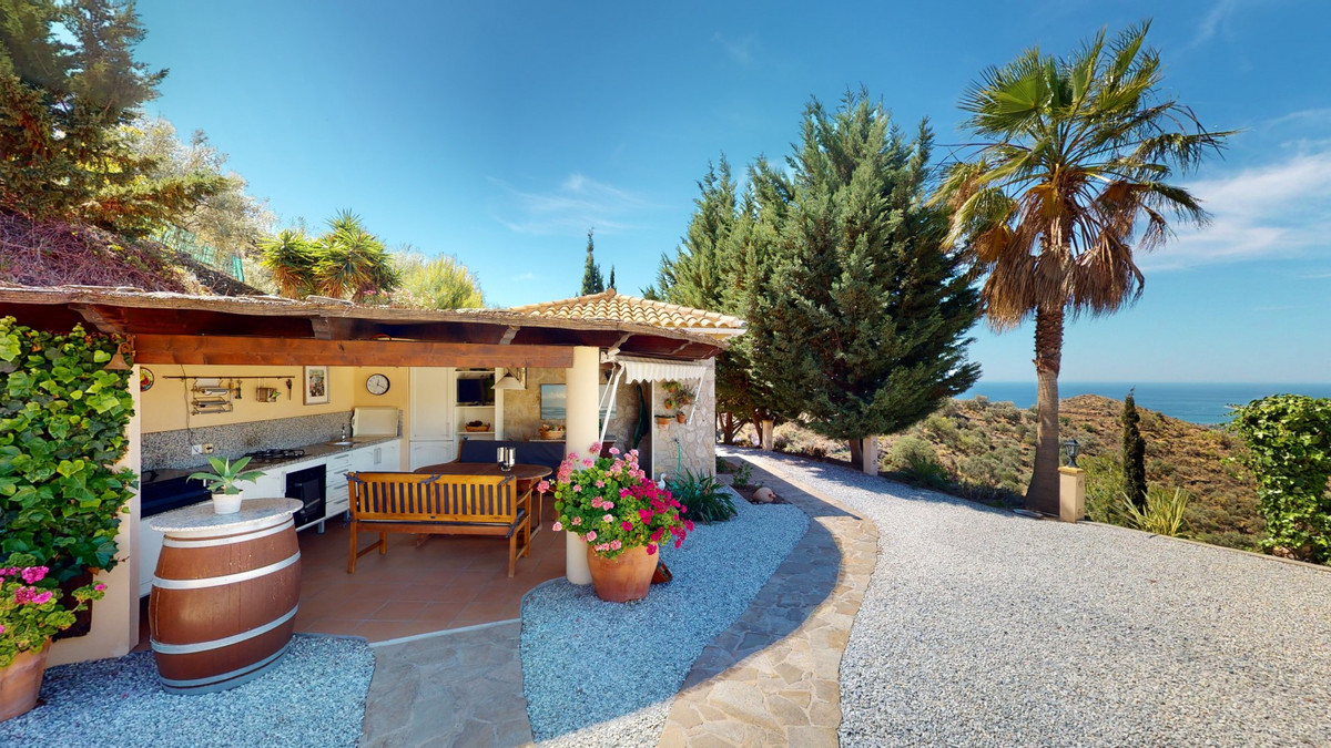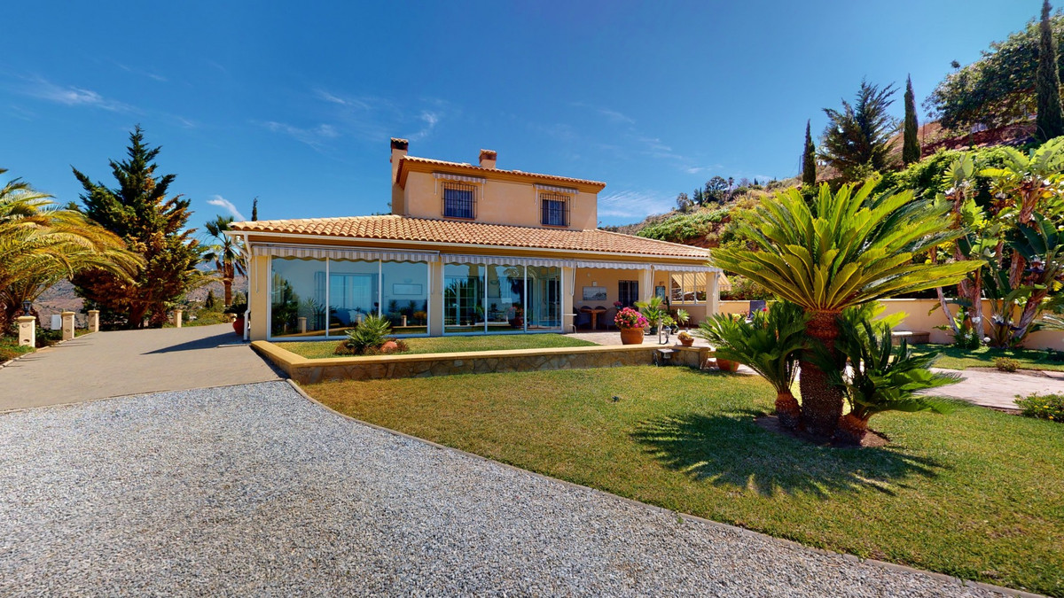 Het perfecte uitzicht gecombineerd met de perfecte zuidwestelijke oriëntatie, samen geven ze de ultieme kans op absoluut geluk. Een villa die niets te wensen overlaat, gebouwd volgens een zeer hoge standaard met een onvergelijkbaar mooie tuin met spa, sauna en zwembad, een luxe buitenkeuken met geïntegreerde eethoek. Dit alles en meer biedt deze unieke villa, gelegen tussen Algarrobo en Sayalonga. Door de gunstige ligging heeft u naast absolute privacy ook een romantisch uitzicht op de ondergaande zon - deels over de Middellandse Zee en soms - afhankelijk van het seizoen - over het fantastische berglandschap van Málaga. Via een geasfalteerde, met pijnbomen omzoomde privé-toegangsweg bereikt u de imposante entree van het pand, waar zich een palmeneiland bevindt te midden van rondel. Er zijn diverse parkeerplaatsen en een garage plus een grote carport. Op de eerste verdieping van de villa bevinden zich de woonkamer met aparte open haard, een gastentoilet en wasruimte, een moderne keuken met toegang tot de zeer ruime serre, waar het aan niets ontbreekt. Verder bevindt zich op de eerste verdieping een zeer mooie slaapkamer met een badkamer en suite. Op de bovenverdieping van de villa bevindt zich de hoofdslaapkamer met een ruime en-suite badkamer en een aangrenzende kleedkamer. De woning is voorzien van centrale verwarming, airconditioning en een open haard. Op het perceel staan diverse fruitbomen, palmbomen, tropische planten en pijnbomen. Het strand en de zee liggen op 15 minuten afstand, evenals de golfbaan en jachthaven van Caleta - en de luchthaven van Malaga is in slechts 40 minuten te bereiken. We zijn verheugd u binnenkort deze droomwoning te kunnen presenteren, persoonlijk of via een virtuele bezichtiging. Want deze wereld is uniek - net als onze Axarquía. In Andalusië. Aan de Costa del Sol. Hier, aan de zonnige kant van het leven...
