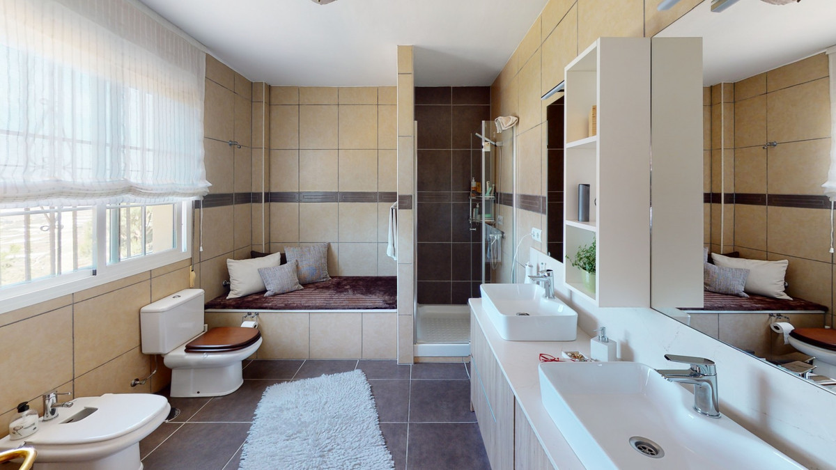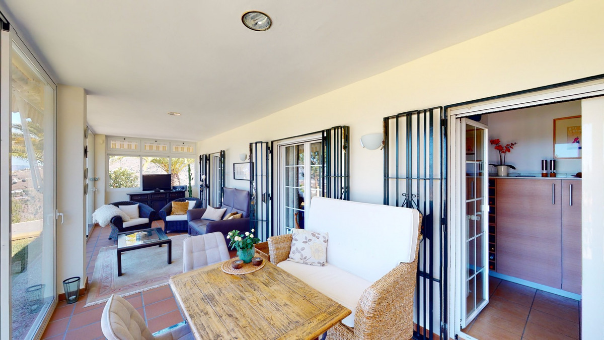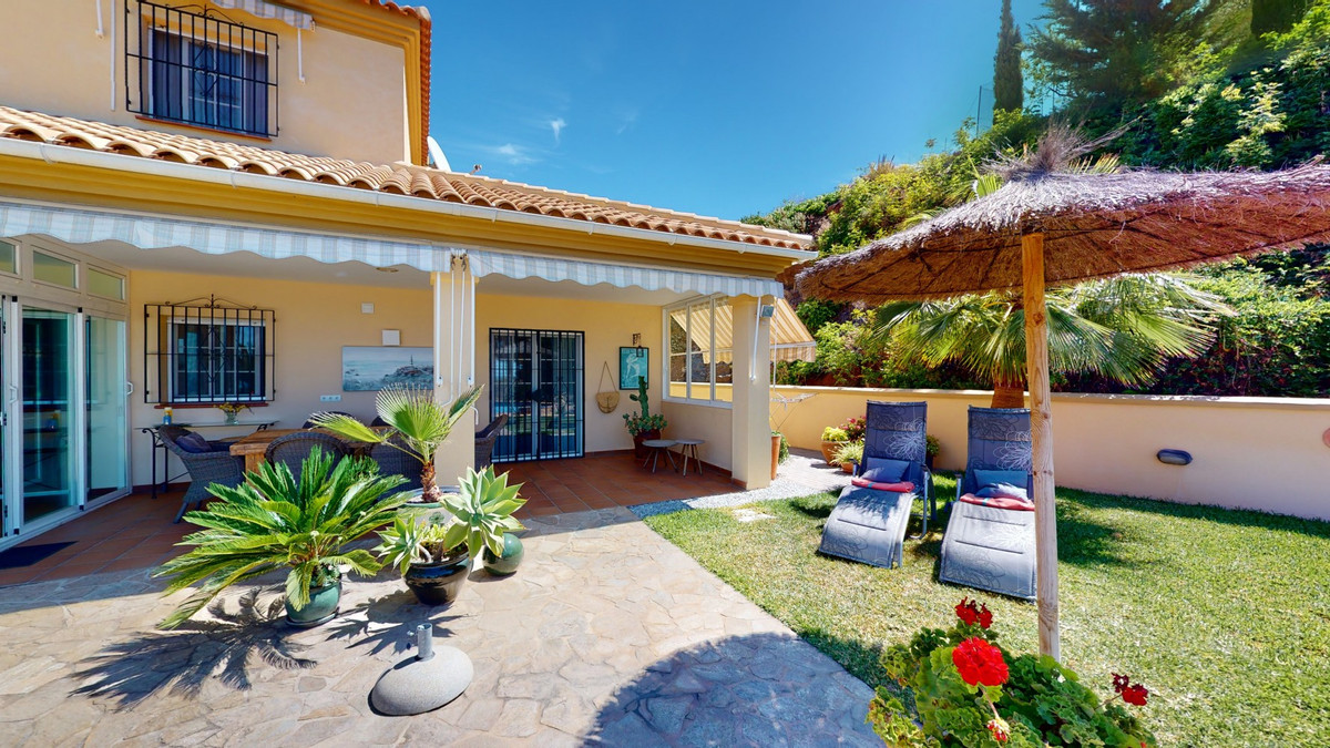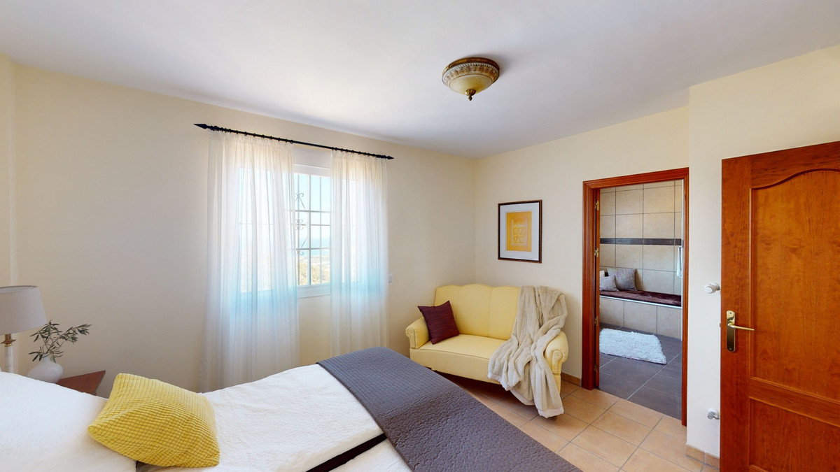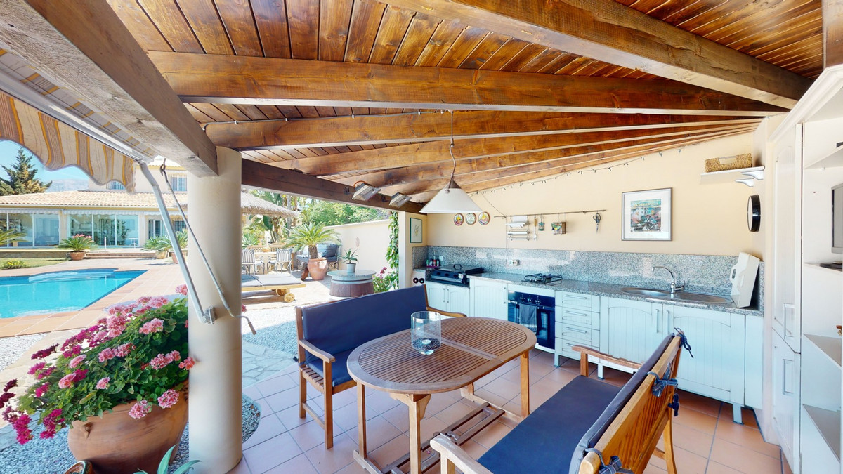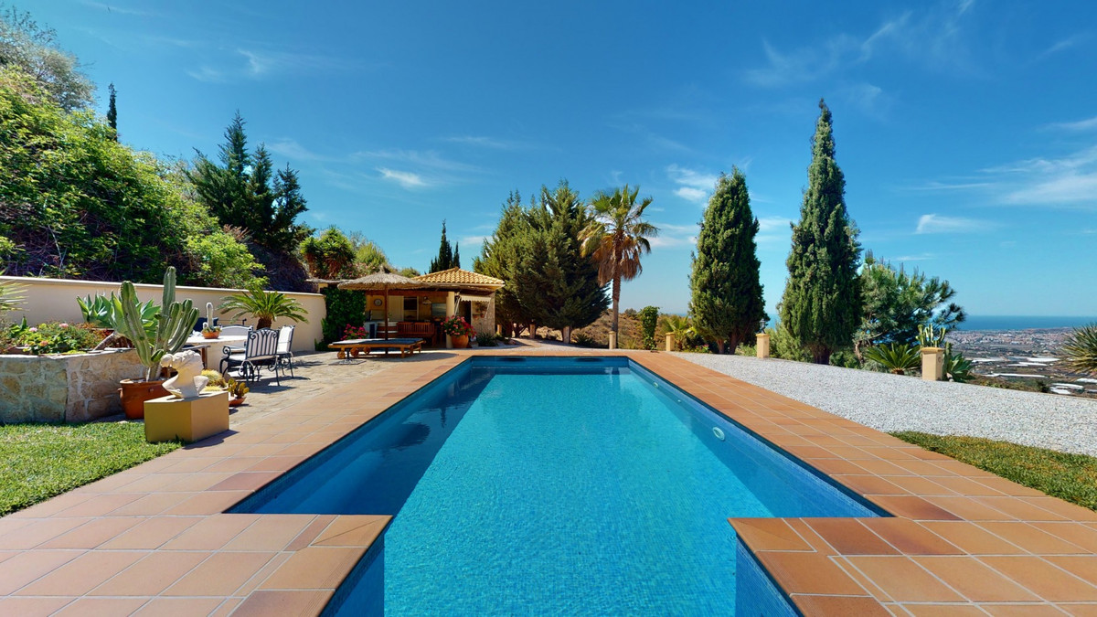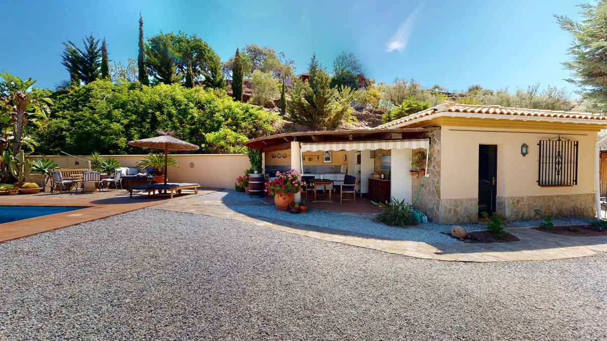 Het perfecte uitzicht gecombineerd met de perfecte zuidwestelijke oriëntatie, samen geven ze de ultieme kans op absoluut geluk. Een villa die niets te wensen overlaat, gebouwd volgens een zeer hoge standaard met een onvergelijkbaar mooie tuin met spa, sauna en zwembad, een luxe buitenkeuken met geïntegreerde eethoek. Dit alles en meer biedt deze unieke villa, gelegen tussen Algarrobo en Sayalonga. Door de gunstige ligging heeft u naast absolute privacy ook een romantisch uitzicht op de ondergaande zon - deels over de Middellandse Zee en soms - afhankelijk van het seizoen - over het fantastische berglandschap van Málaga. Via een geasfalteerde, met pijnbomen omzoomde privé-toegangsweg bereikt u de imposante entree van het pand, waar zich een palmeneiland bevindt te midden van rondel. Er zijn diverse parkeerplaatsen en een garage plus een grote carport. Op de eerste verdieping van de villa bevinden zich de woonkamer met aparte open haard, een gastentoilet en wasruimte, een moderne keuken met toegang tot de zeer ruime serre, waar het aan niets ontbreekt. Verder bevindt zich op de eerste verdieping een zeer mooie slaapkamer met een badkamer en suite. Op de bovenverdieping van de villa bevindt zich de hoofdslaapkamer met een ruime en-suite badkamer en een aangrenzende kleedkamer. De woning is voorzien van centrale verwarming, airconditioning en een open haard. Op het perceel staan diverse fruitbomen, palmbomen, tropische planten en pijnbomen. Het strand en de zee liggen op 15 minuten afstand, evenals de golfbaan en jachthaven van Caleta - en de luchthaven van Malaga is in slechts 40 minuten te bereiken. We zijn verheugd u binnenkort deze droomwoning te kunnen presenteren, persoonlijk of via een virtuele bezichtiging. Want deze wereld is uniek - net als onze Axarquía. In Andalusië. Aan de Costa del Sol. Hier, aan de zonnige kant van het leven...