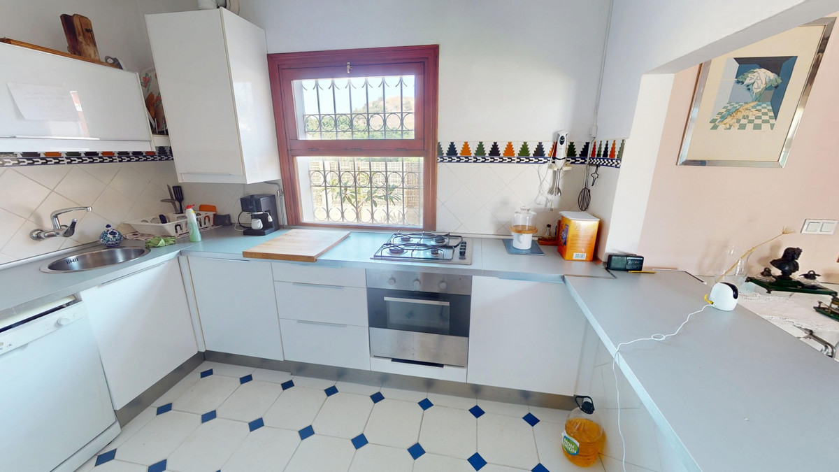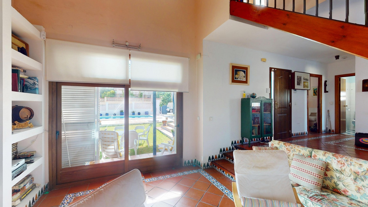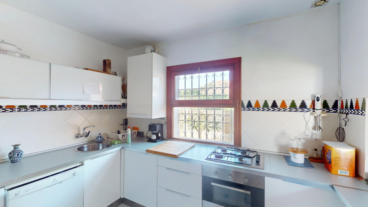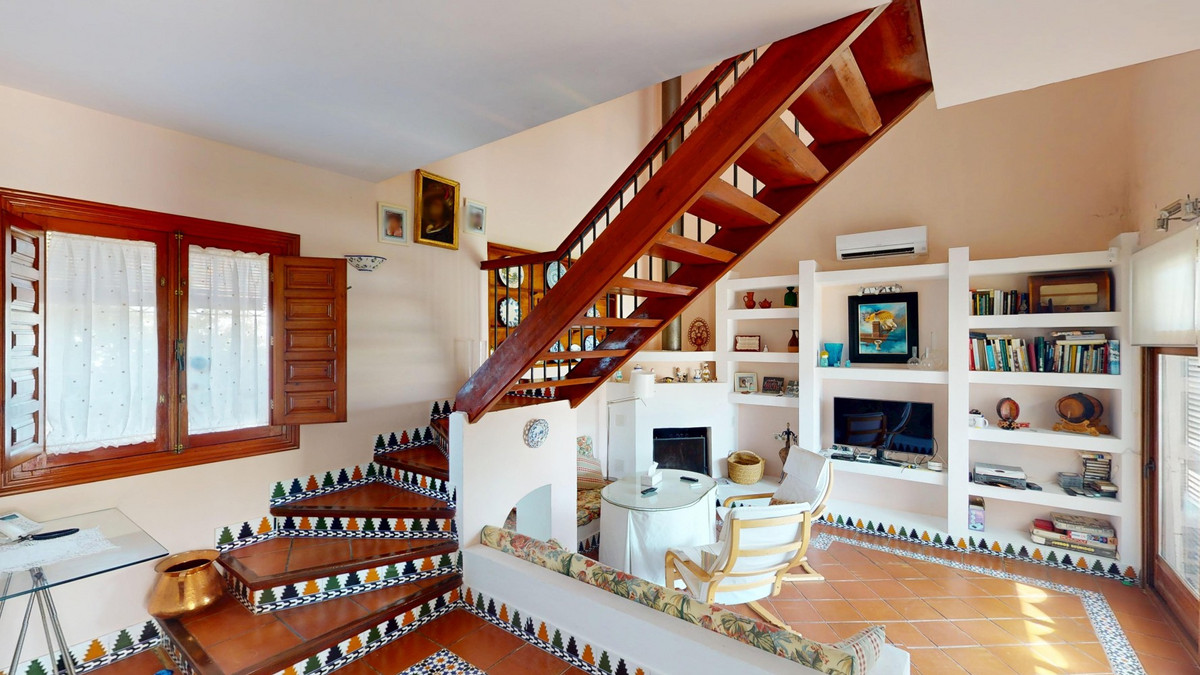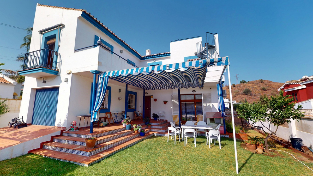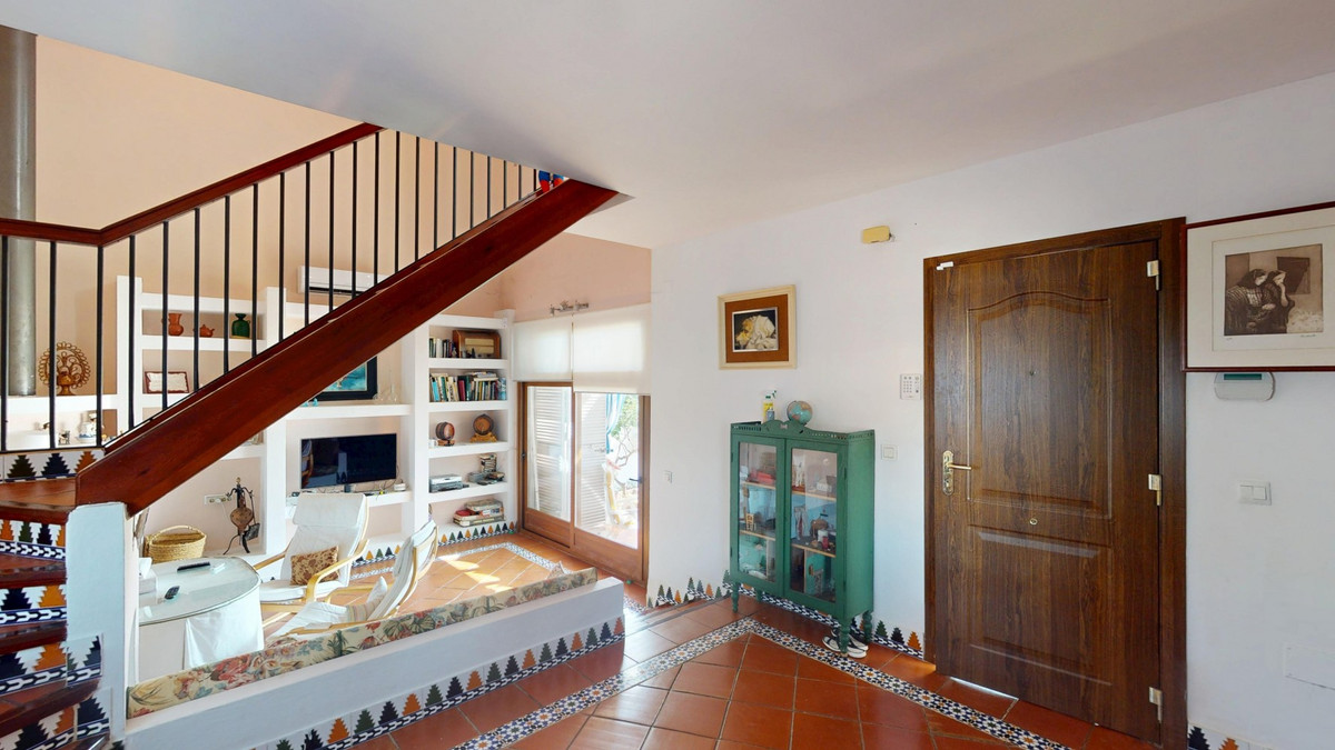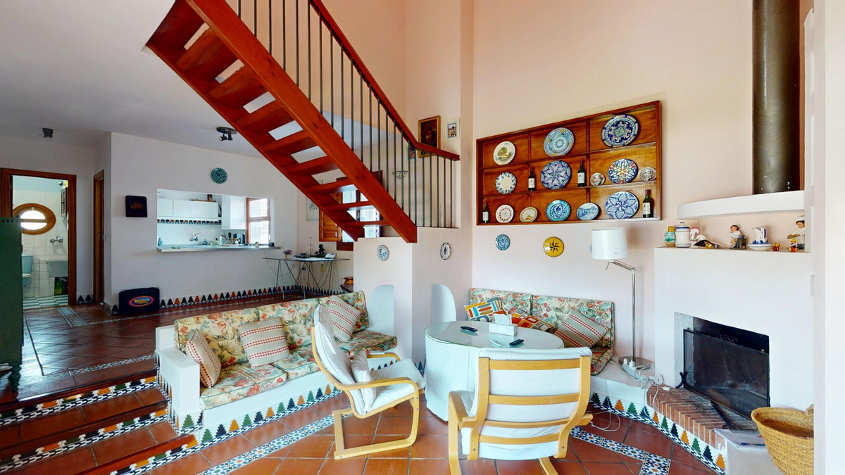 Deze prachtige Spaanse villa beslaat twee verdiepingen en beschikt over drie slaapkamers, waaronder een indrukwekkende hoofdslaapkamer, en twee badkamers. De villa combineert traditionele Andalusische charme met modern comfort. Het mediterraan geïnspireerde ontwerp komt tot uiting in de terracotta tegelvloeren, warme houten accenten en lichte, luchtige ruimtes. De woonkamer heeft een unieke split-level indeling met decoratieve tegelranden, een gezellige open haard en ingebouwde planken. Een stijlvolle houten trap leidt naar de bovenverdieping, terwijl de open keuken naadloos aansluit op de woonkamer - perfect voor een gezinsverblijf of om gasten te ontvangen. De slaapkamers zijn ruim en voorzien van ingebouwde kasten voor optimale opbergruimte. Grote ramen met traditionele houten luiken laten natuurlijk licht binnenstromen en bieden een schilderachtig uitzicht op de omgeving. De badkamers zijn vol karakter, waarvan één met een blauw-wit geblokte vloer met decoratieve tegelranden. Buiten beschikt de villa over een privétuin met een zwembad, een relaxruimte waar u heerlijk kunt ontspannen, een garage en een dakterras met een prachtig uitzicht - ideaal om te genieten van het klimaat en de omgeving van de Costa del Sol. Deze woning, gelegen in Chilches, is perfect als permanente woning, vakantieverblijf of investering voor verhuur. We zijn blij u binnenkort deze droomwoning te kunnen presenteren, persoonlijk of via een virtuele bezichtiging. Want deze wereld is uniek - net als onze Axarquía. In Andalusië. Aan de Costa del Sol. Hier, aan de zonnige kant van het leven...