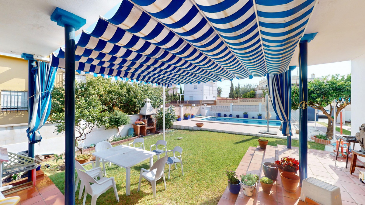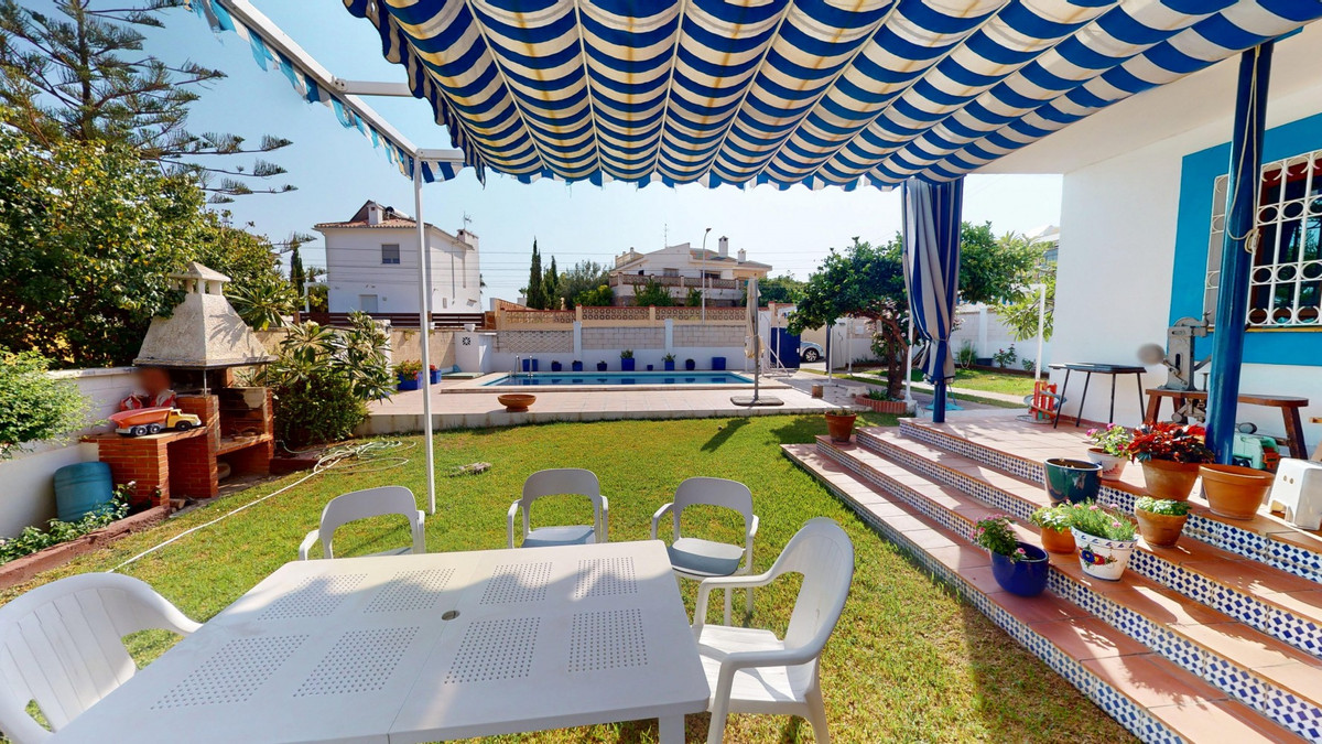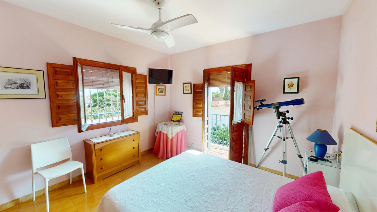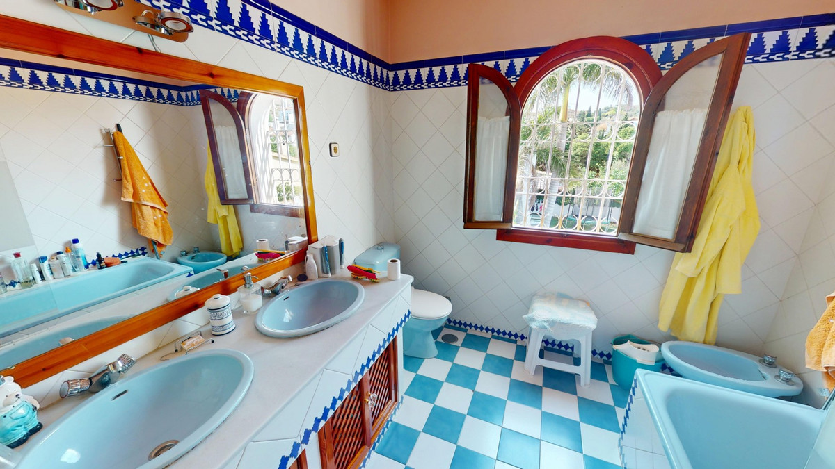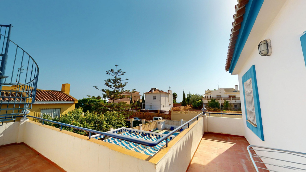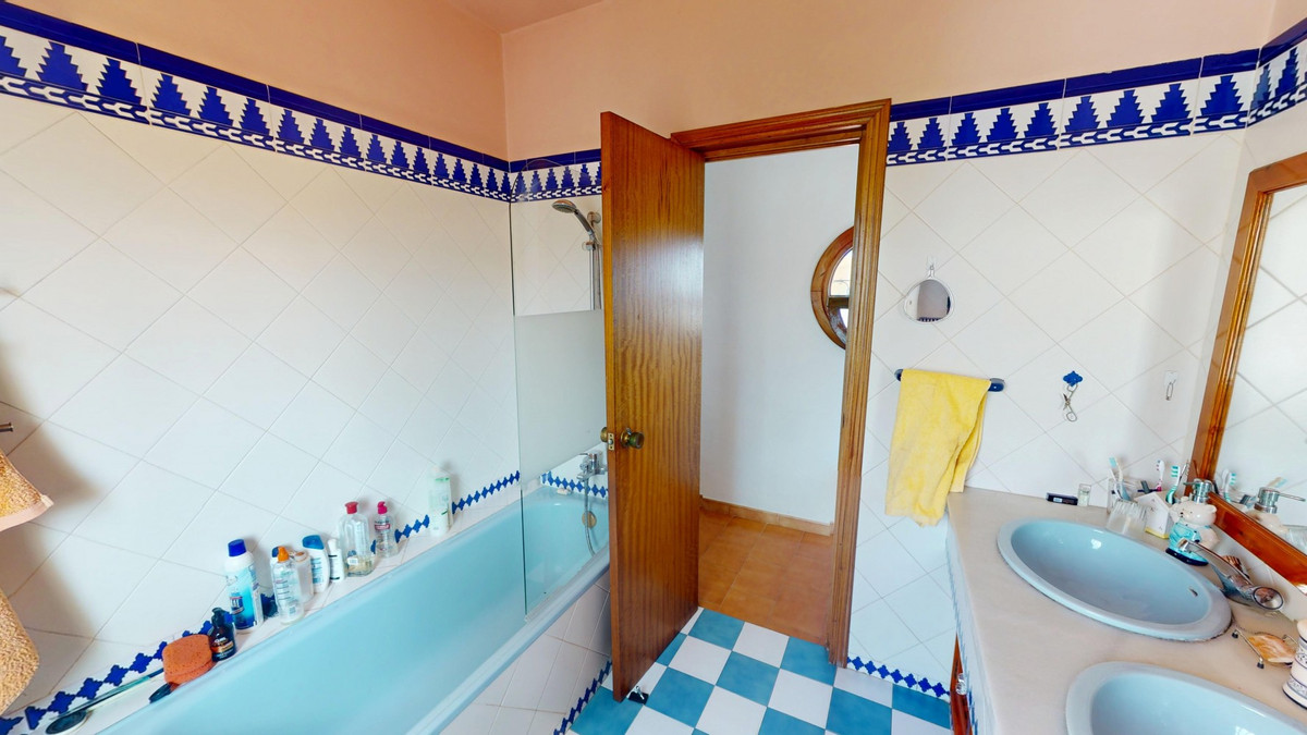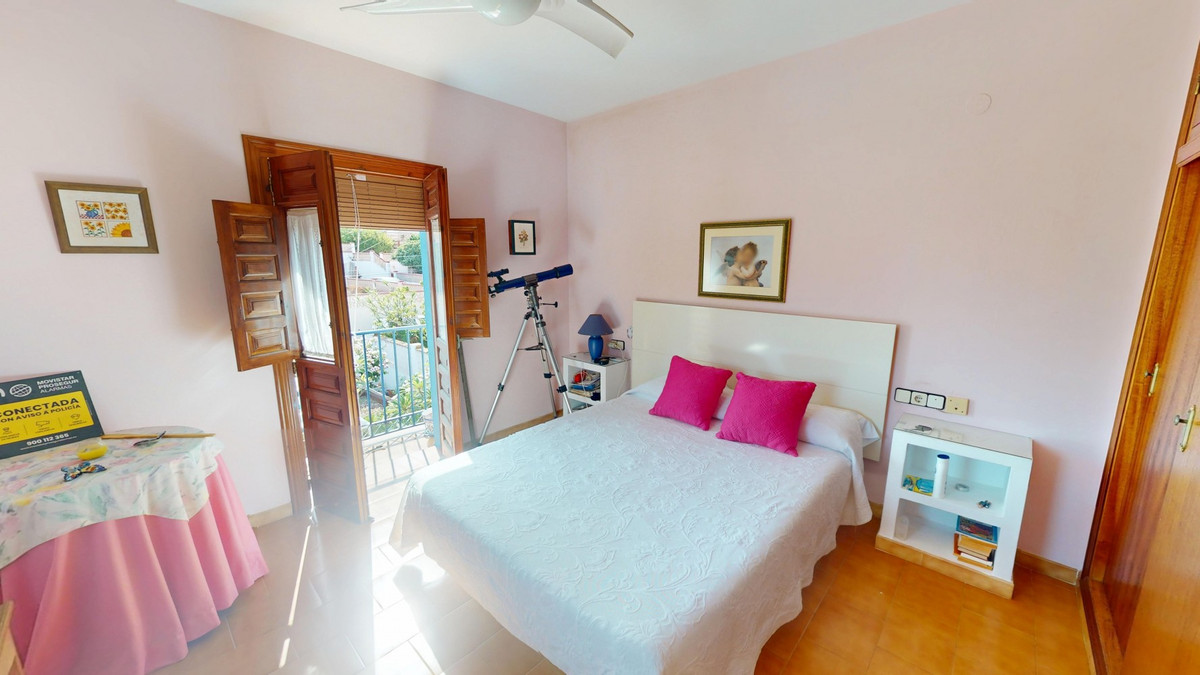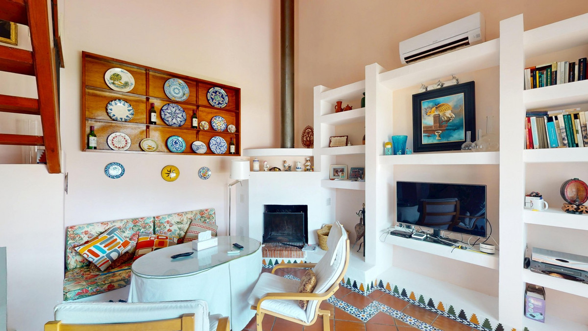 Deze prachtige Spaanse villa beslaat twee verdiepingen en beschikt over drie slaapkamers, waaronder een indrukwekkende hoofdslaapkamer, en twee badkamers. De villa combineert traditionele Andalusische charme met modern comfort. Het mediterraan geïnspireerde ontwerp komt tot uiting in de terracotta tegelvloeren, warme houten accenten en lichte, luchtige ruimtes. De woonkamer heeft een unieke split-level indeling met decoratieve tegelranden, een gezellige open haard en ingebouwde planken. Een stijlvolle houten trap leidt naar de bovenverdieping, terwijl de open keuken naadloos aansluit op de woonkamer - perfect voor een gezinsverblijf of om gasten te ontvangen. De slaapkamers zijn ruim en voorzien van ingebouwde kasten voor optimale opbergruimte. Grote ramen met traditionele houten luiken laten natuurlijk licht binnenstromen en bieden een schilderachtig uitzicht op de omgeving. De badkamers zijn vol karakter, waarvan één met een blauw-wit geblokte vloer met decoratieve tegelranden. Buiten beschikt de villa over een privétuin met een zwembad, een relaxruimte waar u heerlijk kunt ontspannen, een garage en een dakterras met een prachtig uitzicht - ideaal om te genieten van het klimaat en de omgeving van de Costa del Sol. Deze woning, gelegen in Chilches, is perfect als permanente woning, vakantieverblijf of investering voor verhuur. We zijn blij u binnenkort deze droomwoning te kunnen presenteren, persoonlijk of via een virtuele bezichtiging. Want deze wereld is uniek - net als onze Axarquía. In Andalusië. Aan de Costa del Sol. Hier, aan de zonnige kant van het leven...