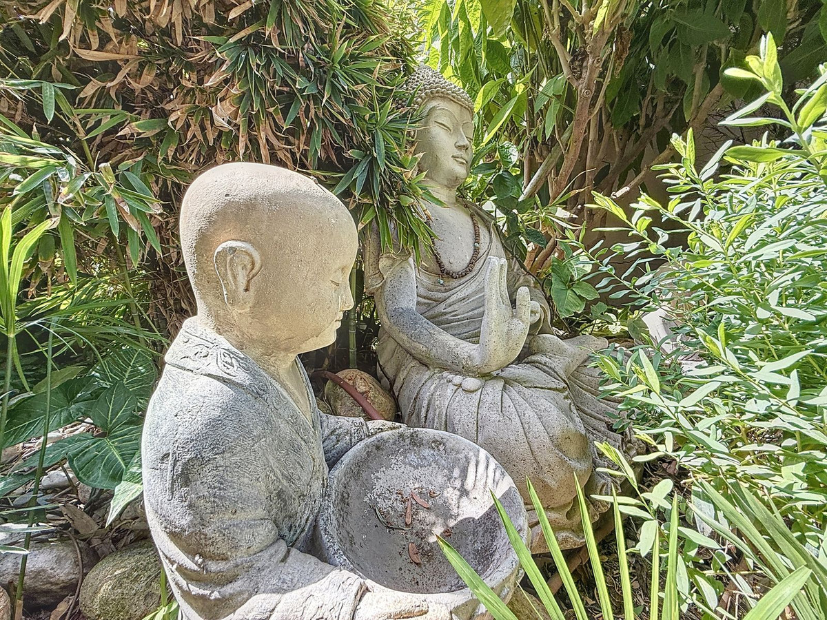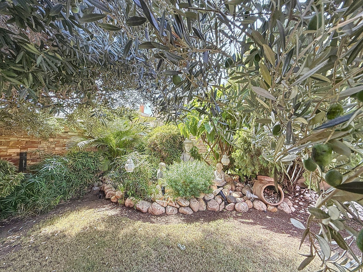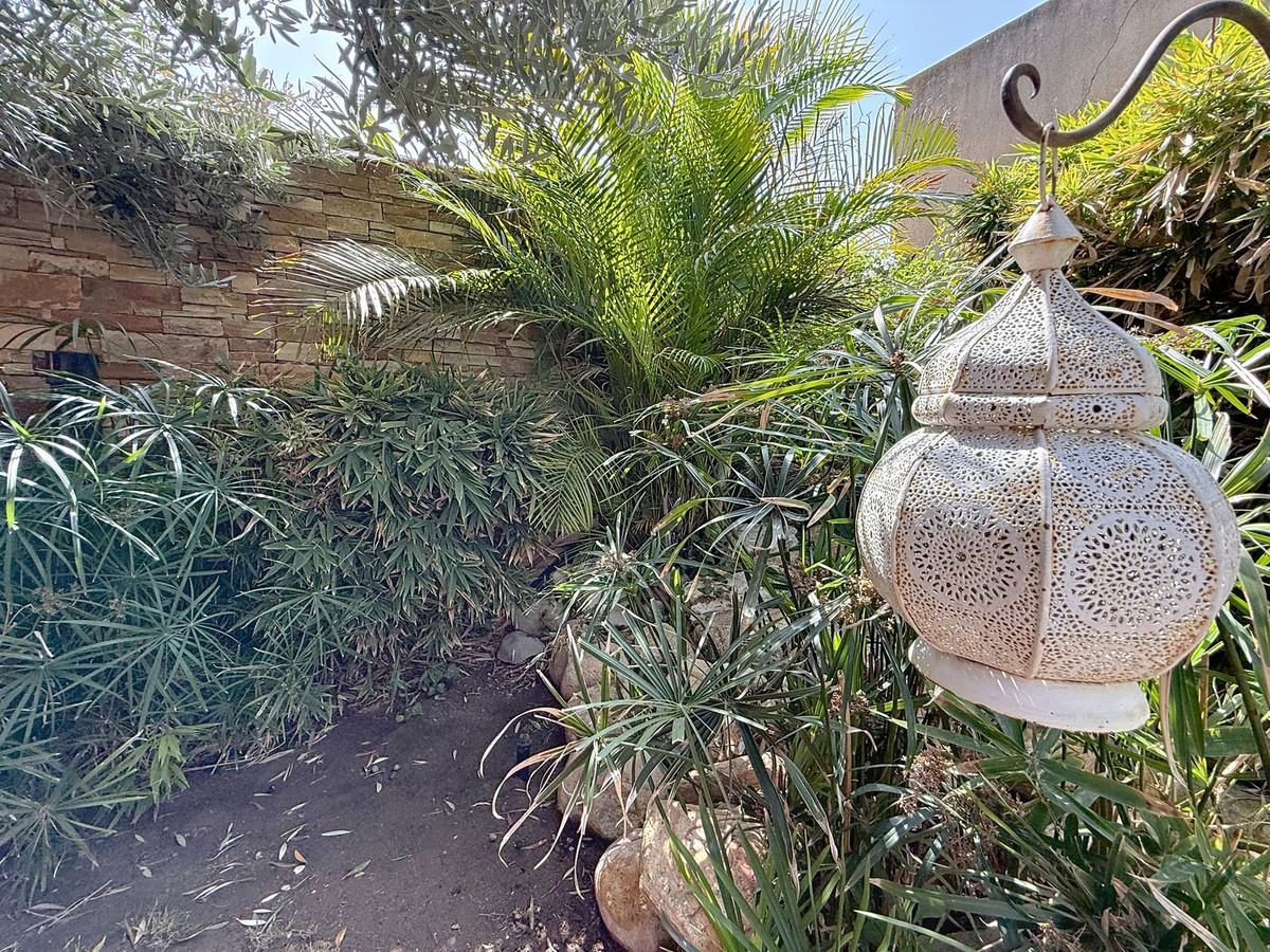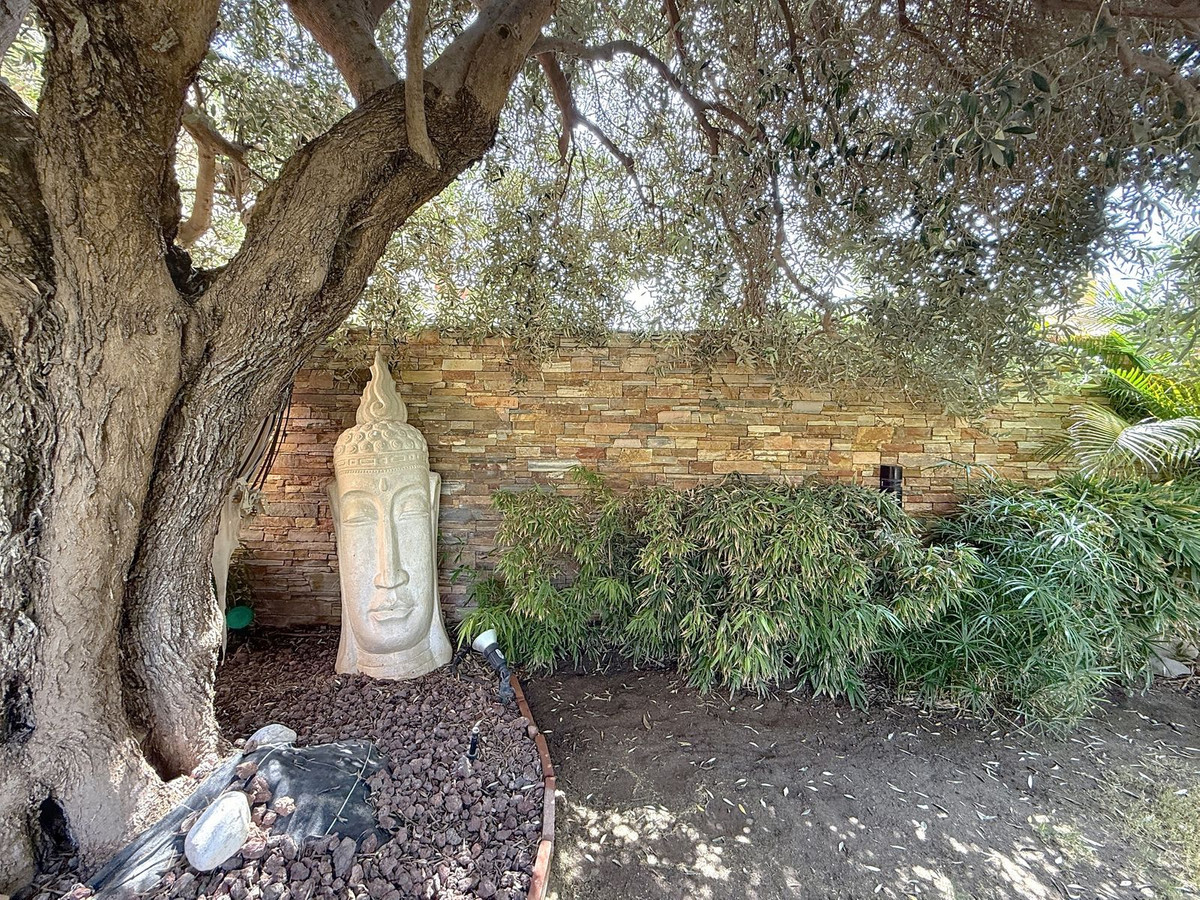 Vanaf het moment dat u door de privépoort stapt, wordt u omringd door een gevoel van sereniteit. De tuinen zijn een wereld op zich: een eeuwenoude olijfboom als beschermer, Boeddha-accenten die een spirituele rust creëren, schaduwrijke terrassen en intieme loungehoekjes die uitnodigen tot pure ontspanning. In het hart ligt een zwembad van 6x4 meter met jacuzzi, omringd door natuurlijk groen en de rustgevende schaduw van volwassen bomen – een zeldzame oase op deze bevoorrechte locatie.