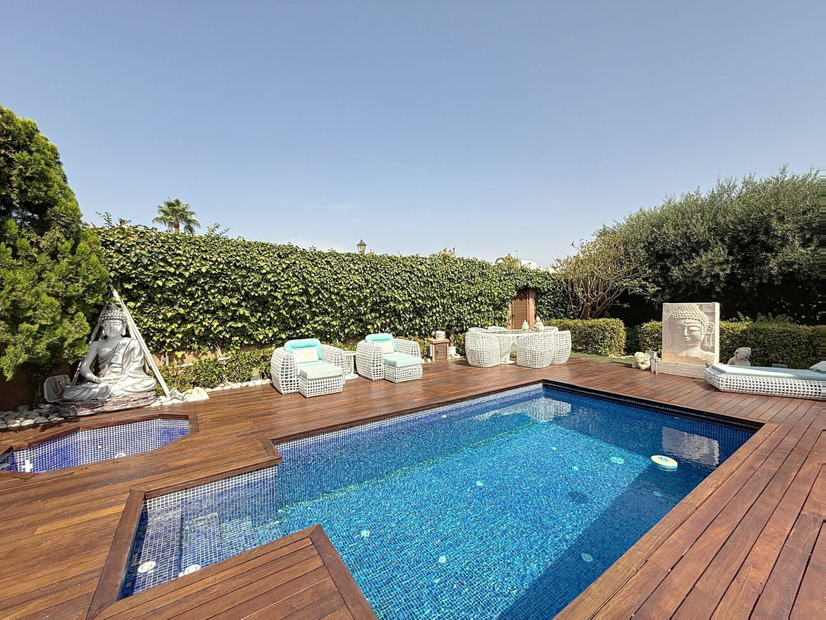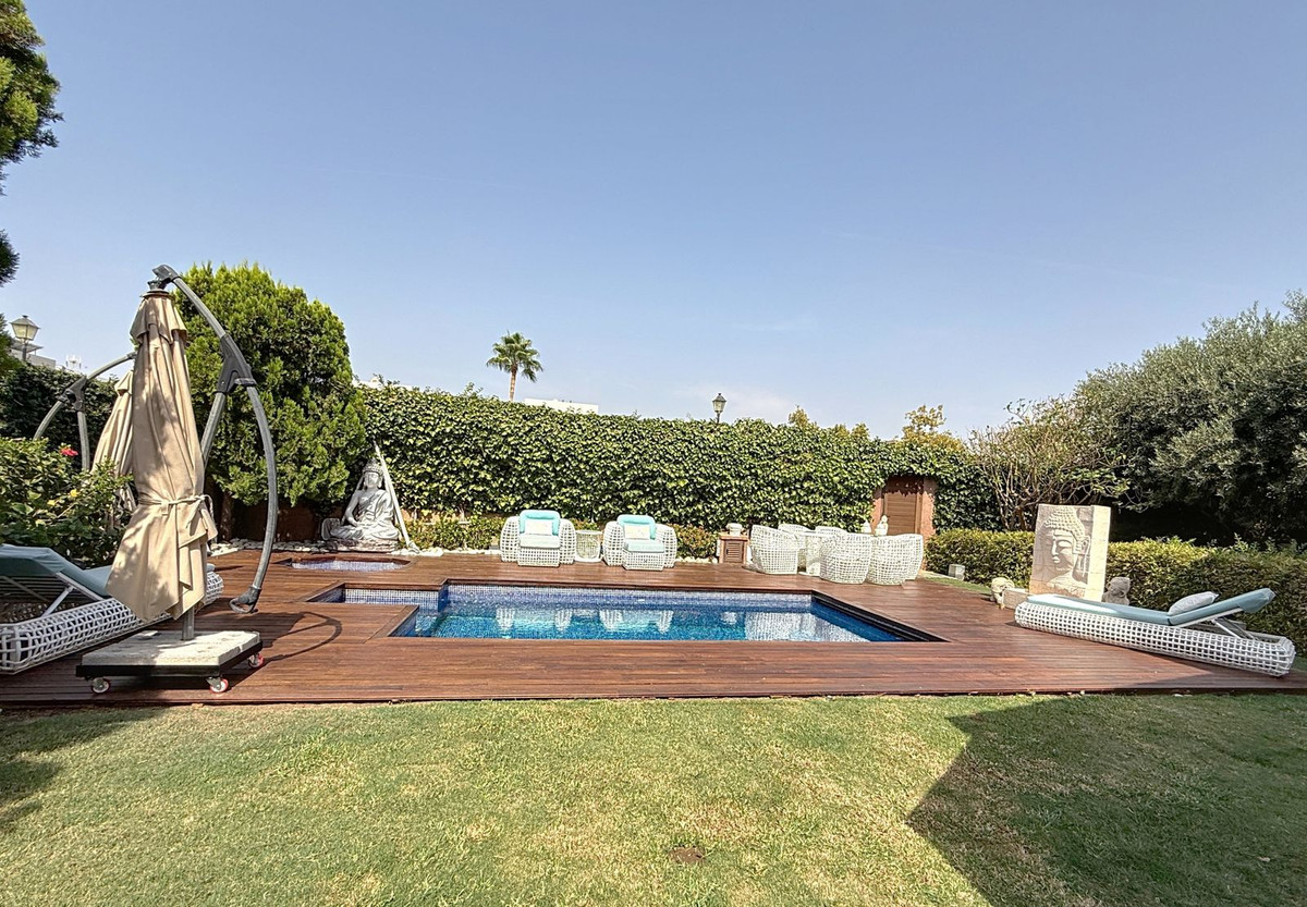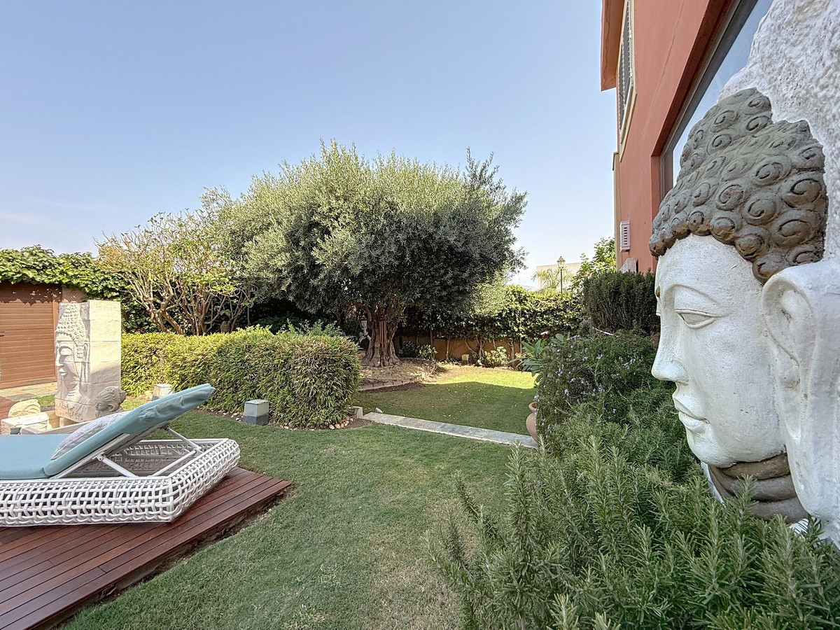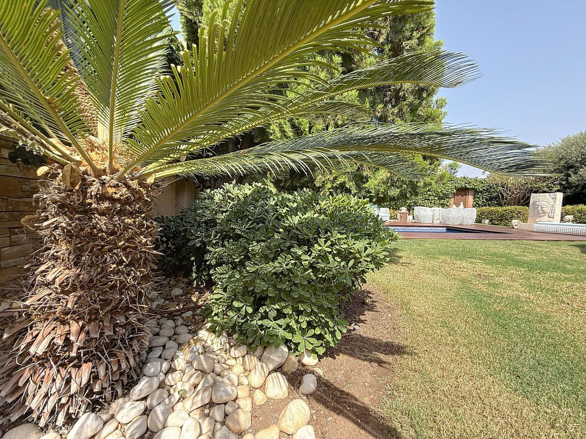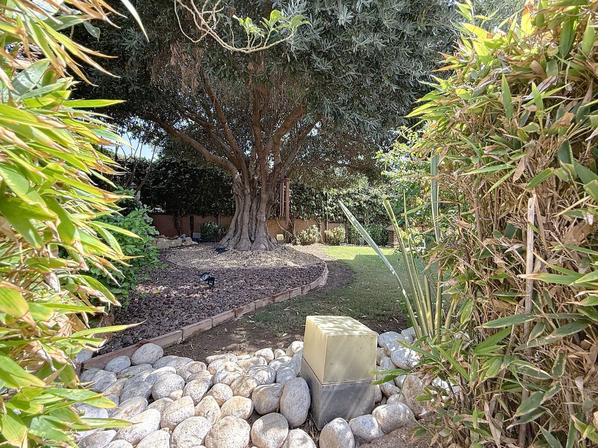 Vanaf het moment dat u door de privépoort stapt, wordt u omringd door een gevoel van sereniteit. De tuinen zijn een wereld op zich: een eeuwenoude olijfboom als beschermer, Boeddha-accenten die een spirituele rust creëren, schaduwrijke terrassen en intieme loungehoekjes die uitnodigen tot pure ontspanning. In het hart ligt een zwembad van 6x4 meter met jacuzzi, omringd door natuurlijk groen en de rustgevende schaduw van volwassen bomen – een zeldzame oase op deze bevoorrechte locatie.