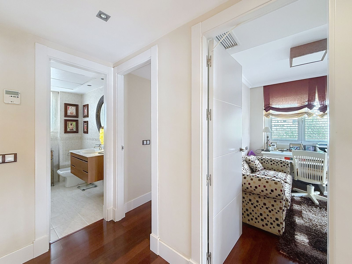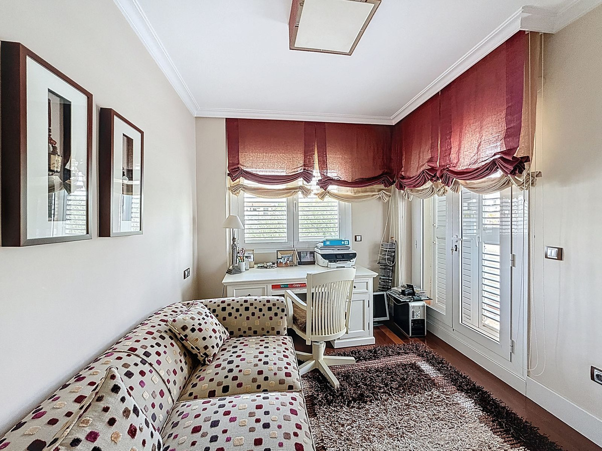 Boven biedt het nachtgedeelte drie ruime slaapkamers, waaronder een rustige master suite met en-suite badkamer. Een tweede gastenkamer met eigen badkamer en een derde slaapkamer, momenteel in gebruik als kantoor, zorgen voor comfort voor familie en bezoekers. Een aangrenzende kamer – nu in gebruik als kleedkamer – kan eenvoudig worden omgebouwd tot een vierde slaapkamer of een privé-retraite.