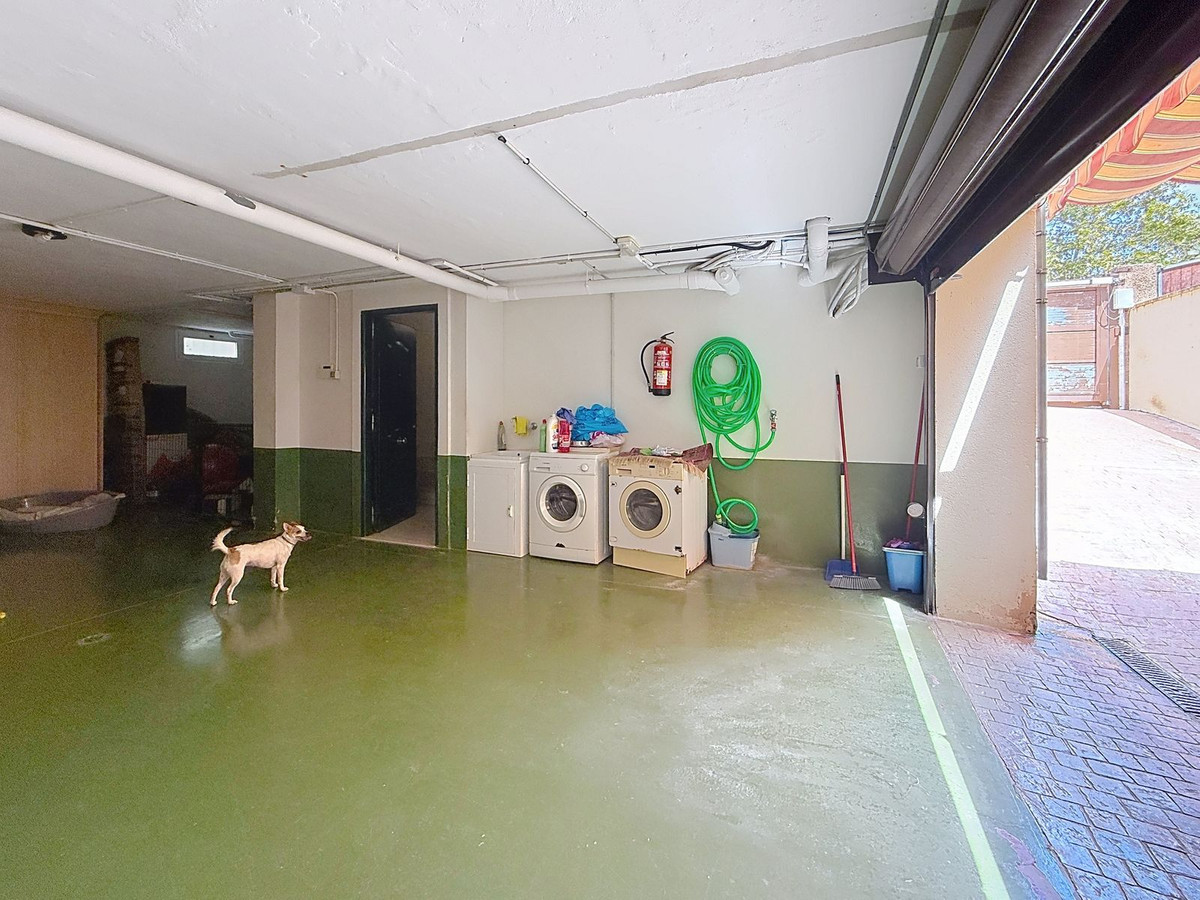 Op de benedenverdieping bevindt zich een ruime garage met ruimte voor 3-4 auto's. Deze garage biedt niet alleen ruimte voor voertuigen, maar ook voor opslag of het creëren van extra gastenverblijven. Hier vindt u ook het onafhankelijke waterreservoir: het terrein is rechtstreeks aangesloten op het gemeentelijk waterleidingnet, maar beschikt over een eigen reservoir voor een constante, betrouwbare waterstroom. De gehele tuin is voorzien van een automatisch elektrisch irrigatiesysteem met timer, wat het onderhoud moeiteloos maakt.
