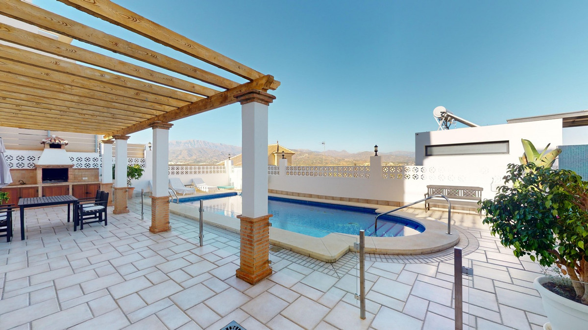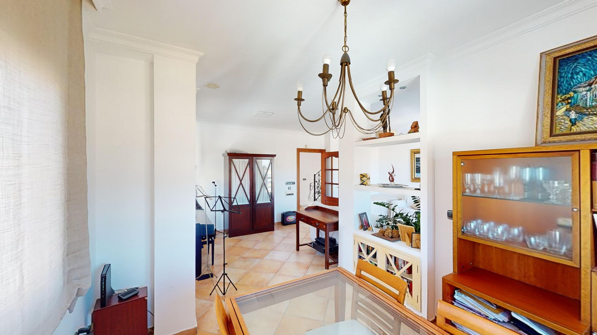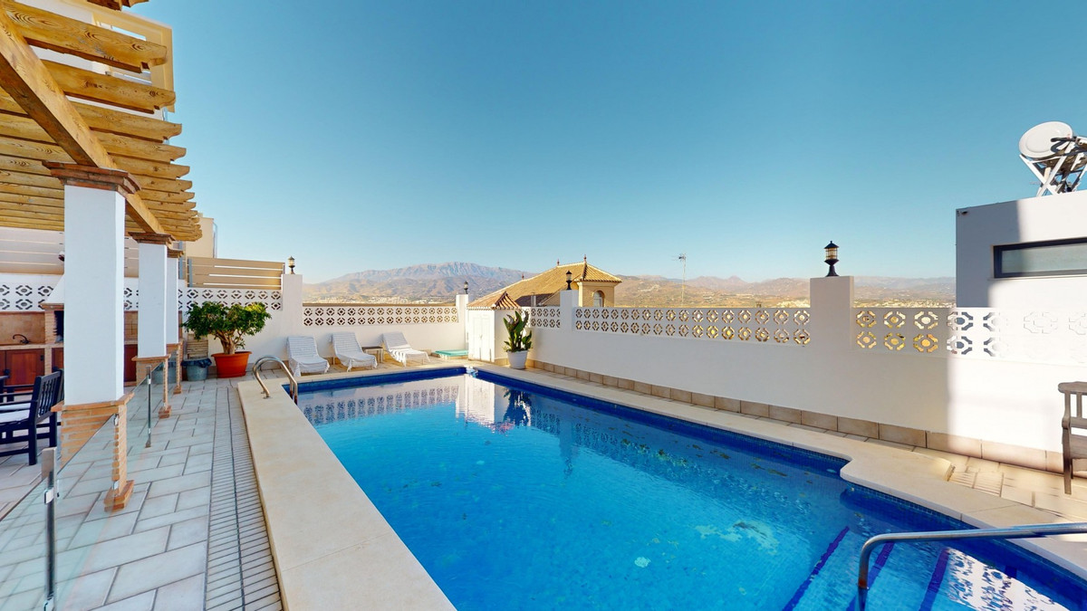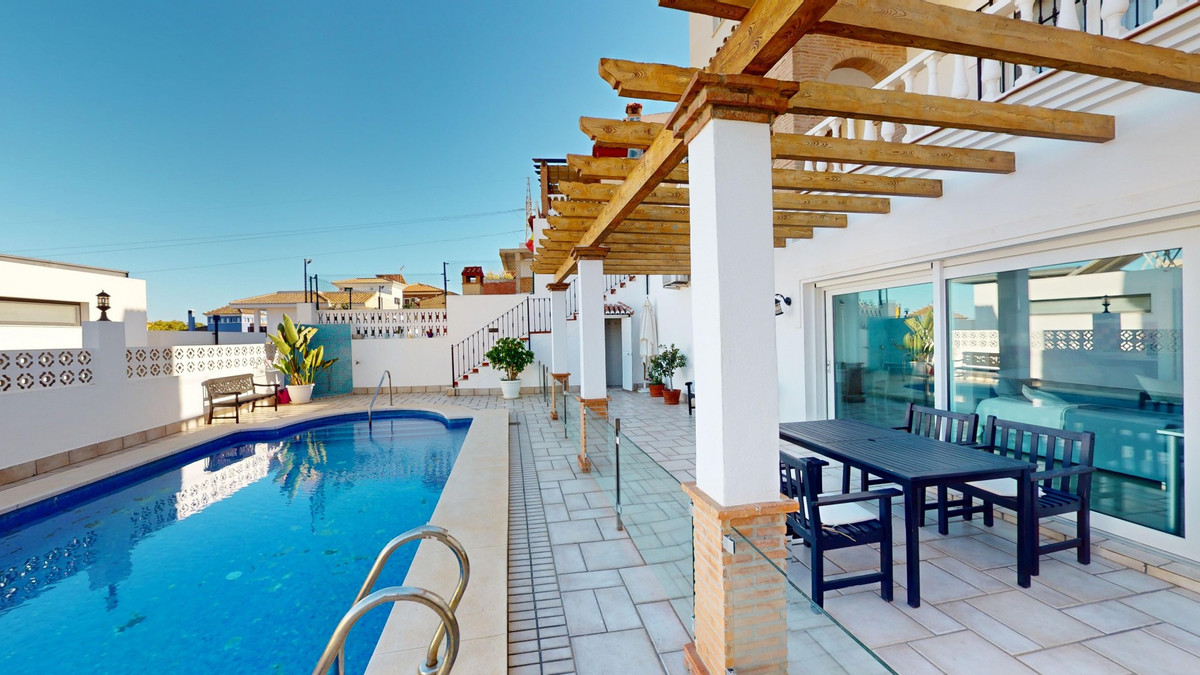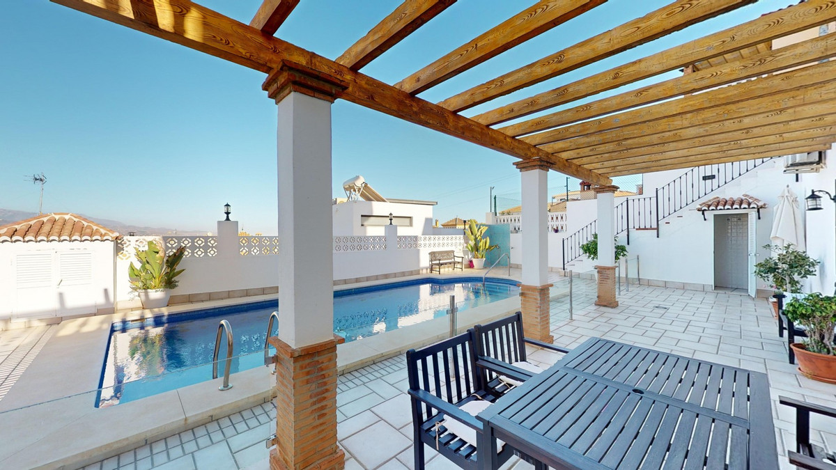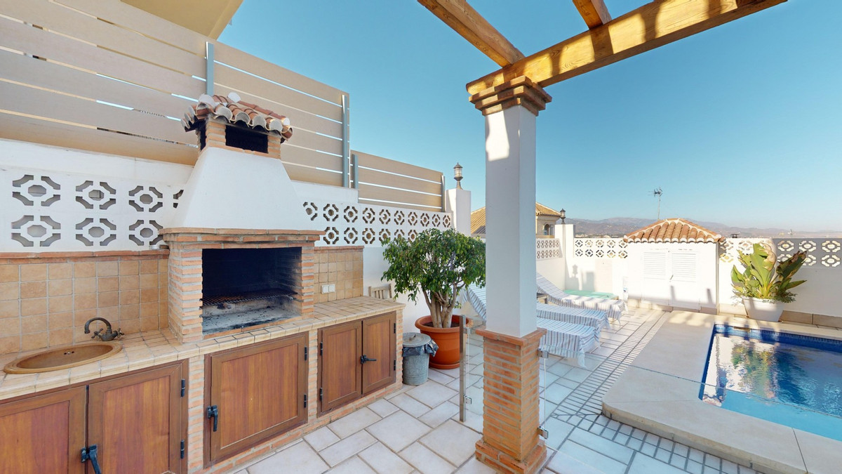 Ontdek uw droommediterrane levensstijl in deze prachtige oase met 3 slaapkamers en 4 badkamers, gelegen in een privé, beveiligde community in Torre del Mar, waar rust en veiligheid voorop staan. Deze exclusieve urbanisatie met slechts een paar aangrenzende woningen garandeert privacy en rust, op slechts enkele minuten van het bruisende centrum van Torre del Mar en slechts 5 minuten van de prachtige stranden. Dit meesterwerk, verdeeld over drie zonovergoten verdiepingen en met een oppervlakte van 204 vierkante meter, combineert moderne luxe naadloos met traditionele Spaanse charme. Stap binnen in een wereld van elegantie, waar rustieke houten balken de hoge plafonds sieren en een sfeer van warmte en verfijning creëren. De open woon- en eetkamer nodigt u uit om te ontspannen en te entertainen, gevuld met natuurlijk licht dat door de grote ramen stroomt en een betoverend uitzicht biedt op de weelderige omgeving. De gastronomische keuken is de droom van elke culinaire liefhebber, met strakke houten kasten, eersteklas granieten aanrechtbladen en ultramoderne apparatuur, en grote ramen die een schilderachtige achtergrond bieden. De rustige hoofdslaapkamer, een ruime oase van 16 m², combineert stijl en comfort, terwijl zes luxe badkamers, waaronder één met turquoise accenten, zorgen voor een spa-achtige ontspanning thuis. Ontworpen voor veeleisende kopers, biedt het huis een perfecte mix van esthetiek en functionaliteit, inclusief een wasruimte en voldoende opbergruimte voor comfortabel wonen. Geniet van een vloeiend binnen- en buitenleven met meerdere ruimtes om te genieten van de beroemde Spaanse zon, perfect voor zowel entertainment als rustige momenten. Gelegen op slechts een korte rit van de bruisende boulevard van Torre del Mars, biedt deze woning de ideale mix van rustig wonen en gemakkelijke toegang tot lokale voorzieningen, zoals winkels, cafés en restaurants. Torre del Mar is een bruisende kustplaats die bekend staat om zijn prachtige stranden, charmante zeesfeer en uitstekende eetgelegenheden. Omarm de mediterrane levensstijl en maak van dit prachtige huis uw persoonlijke paradijs. We zijn blij u binnenkort deze droomwoning te kunnen presenteren, persoonlijk of via een virtuele bezichtiging. Want deze wereld is uniek, net als onze Axarquía. In Andalusië. Aan de Costa del Sol. Hier, aan de zonnige kant van het leven...