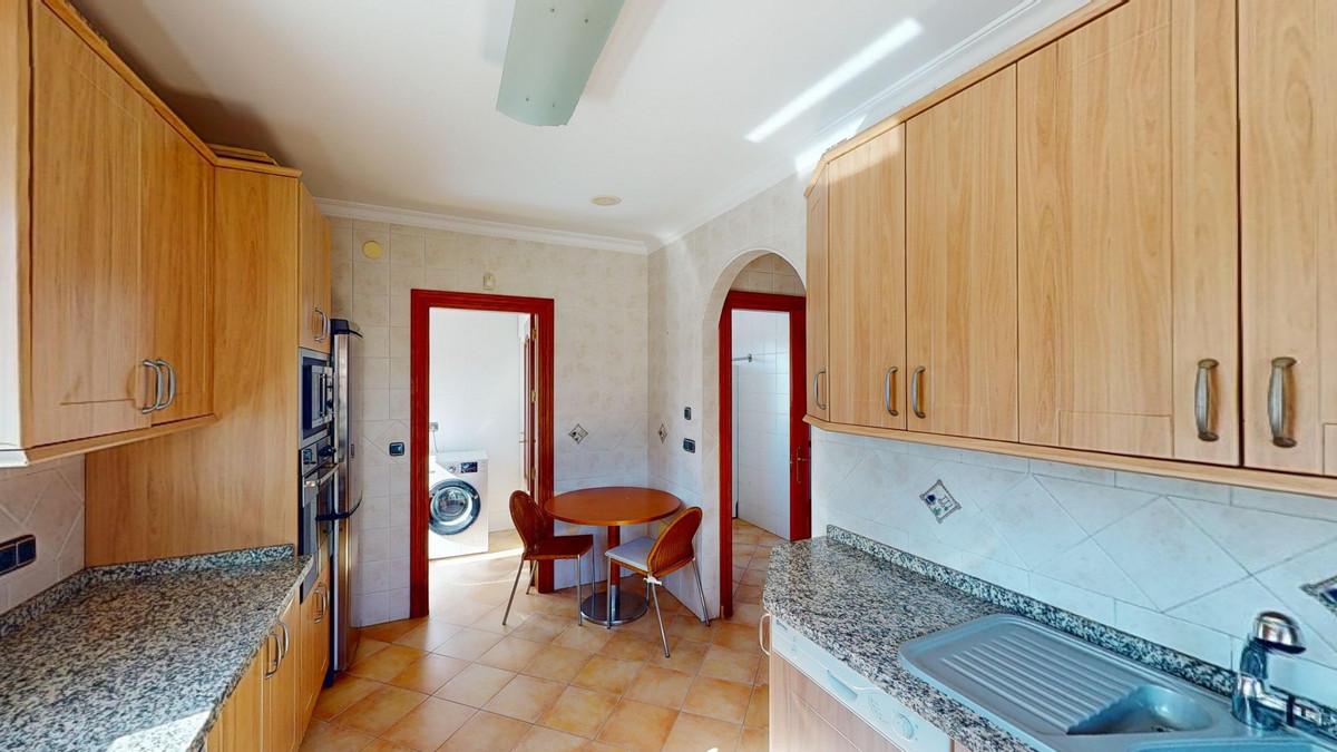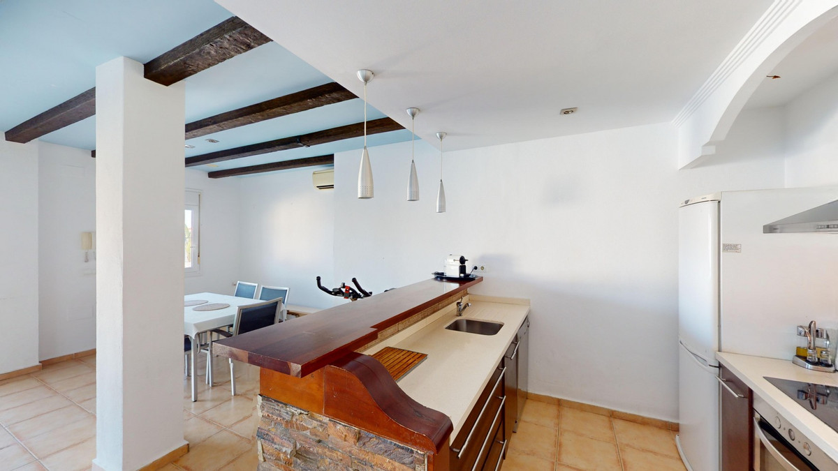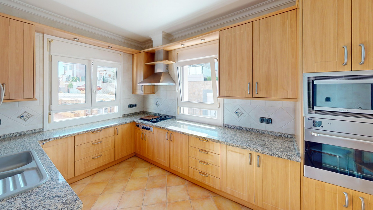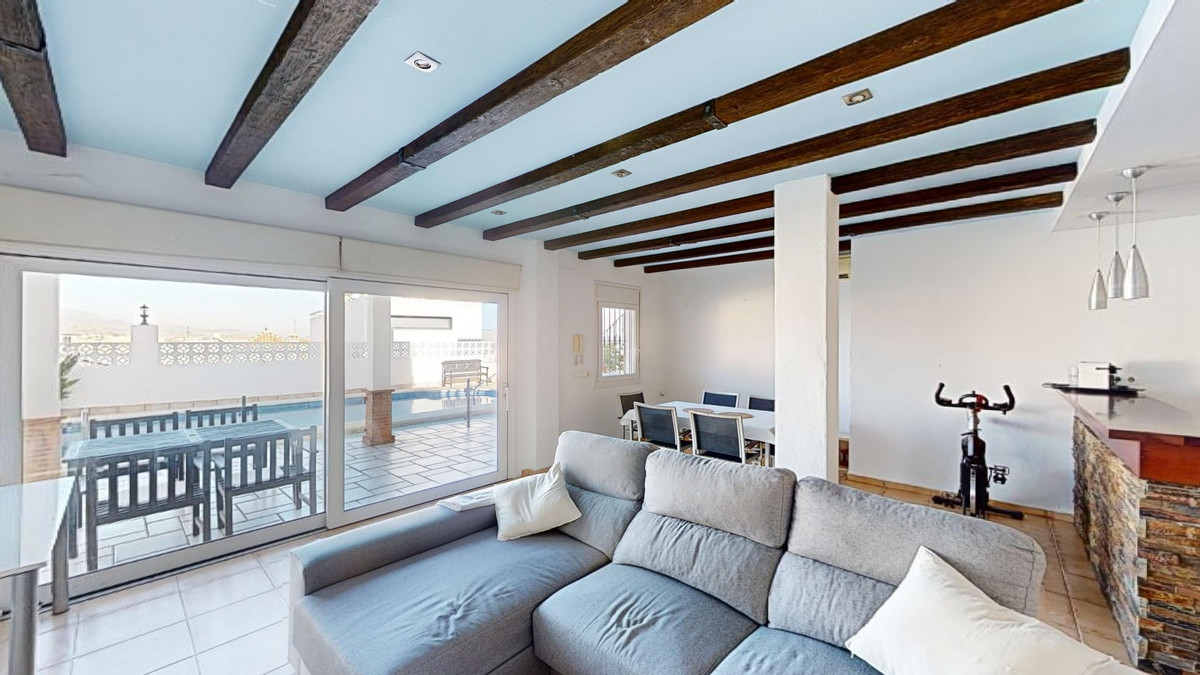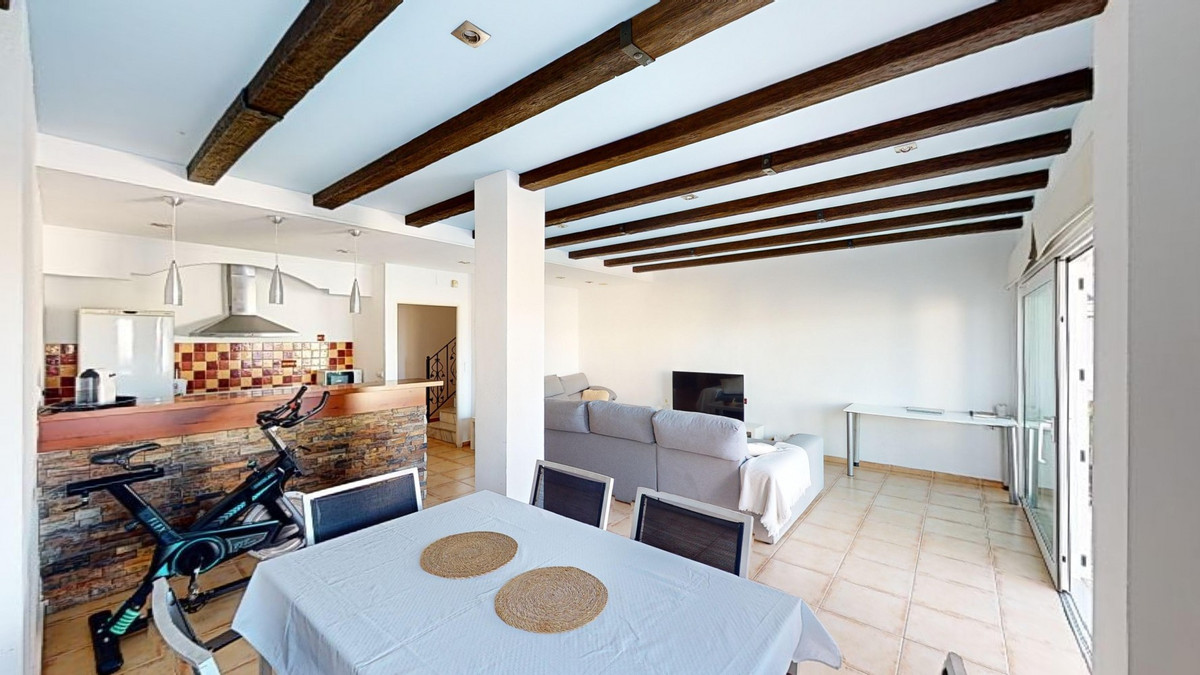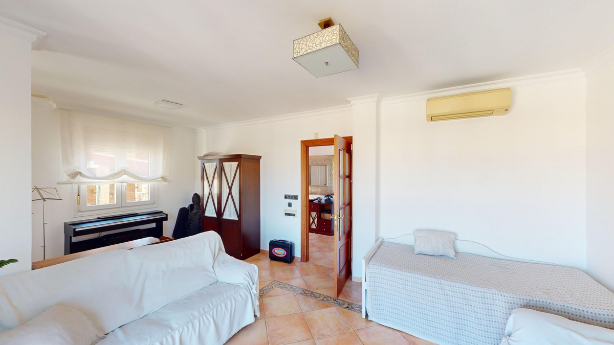 Ontdek uw droommediterrane levensstijl in deze prachtige oase met 3 slaapkamers en 4 badkamers, gelegen in een privé, beveiligde community in Torre del Mar, waar rust en veiligheid voorop staan. Deze exclusieve urbanisatie met slechts een paar aangrenzende woningen garandeert privacy en rust, op slechts enkele minuten van het bruisende centrum van Torre del Mar en slechts 5 minuten van de prachtige stranden. Dit meesterwerk, verdeeld over drie zonovergoten verdiepingen en met een oppervlakte van 204 vierkante meter, combineert moderne luxe naadloos met traditionele Spaanse charme. Stap binnen in een wereld van elegantie, waar rustieke houten balken de hoge plafonds sieren en een sfeer van warmte en verfijning creëren. De open woon- en eetkamer nodigt u uit om te ontspannen en te entertainen, gevuld met natuurlijk licht dat door de grote ramen stroomt en een betoverend uitzicht biedt op de weelderige omgeving. De gastronomische keuken is de droom van elke culinaire liefhebber, met strakke houten kasten, eersteklas granieten aanrechtbladen en ultramoderne apparatuur, en grote ramen die een schilderachtige achtergrond bieden. De rustige hoofdslaapkamer, een ruime oase van 16 m², combineert stijl en comfort, terwijl zes luxe badkamers, waaronder één met turquoise accenten, zorgen voor een spa-achtige ontspanning thuis. Ontworpen voor veeleisende kopers, biedt het huis een perfecte mix van esthetiek en functionaliteit, inclusief een wasruimte en voldoende opbergruimte voor comfortabel wonen. Geniet van een vloeiend binnen- en buitenleven met meerdere ruimtes om te genieten van de beroemde Spaanse zon, perfect voor zowel entertainment als rustige momenten. Gelegen op slechts een korte rit van de bruisende boulevard van Torre del Mars, biedt deze woning de ideale mix van rustig wonen en gemakkelijke toegang tot lokale voorzieningen, zoals winkels, cafés en restaurants. Torre del Mar is een bruisende kustplaats die bekend staat om zijn prachtige stranden, charmante zeesfeer en uitstekende eetgelegenheden. Omarm de mediterrane levensstijl en maak van dit prachtige huis uw persoonlijke paradijs. We zijn blij u binnenkort deze droomwoning te kunnen presenteren, persoonlijk of via een virtuele bezichtiging. Want deze wereld is uniek, net als onze Axarquía. In Andalusië. Aan de Costa del Sol. Hier, aan de zonnige kant van het leven...