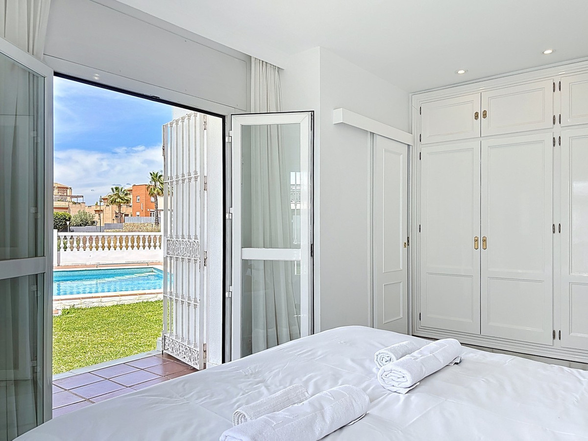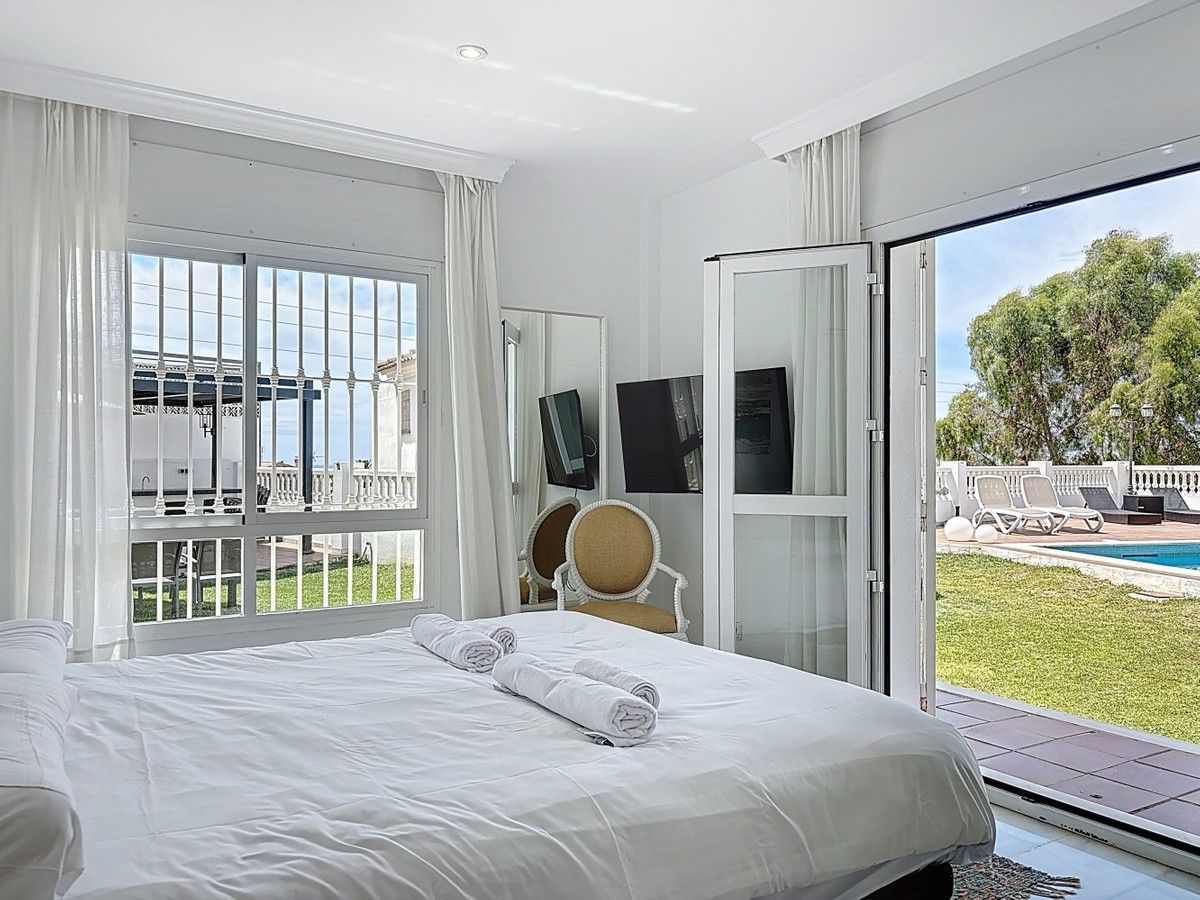 Deze prachtig gepresenteerde moderne villa in Caleta de Vélez biedt een ruime woonkamer, een prachtig uitzicht op zee en uitstekende buitenruimtes, op slechts enkele minuten van het strand, de jachthaven en de golfbaan. Op de begane grond (eerste verdieping) vindt u een gloednieuwe, volledig ingerichte keuken met een aparte wasruimte, een complete badkamer en een uitzonderlijk ruime open eet- en woonkamer. De woonkamer komt uit op een terras met panoramisch uitzicht op zee. Dankzij de zuidwestelijke ligging geniet de ruimte de hele middag van overvloedig natuurlijk licht en spectaculaire zonsondergangen. Op de begane grond bevinden zich twee comfortabele gastenkamers, elk met inbouwkasten en directe toegang tot de tuin, samen met een complete badkamer. De hoofdslaapkamer is ruimer van formaat, eveneens met inbouwkasten, een en-suite badkamer en toegang tot de tuin. De tuin beschikt over een groot zwembad van ongeveer 12 bij 6 meter en een speciale barbecueplek, waardoor het perfect is om gasten te ontvangen of te ontspannen in de zon. Een kelderverdieping met eigen badkamer biedt flexibele ruimte die eenvoudig kan worden omgebouwd tot een fitnessruimte, thuiskantoor, tweede woonkamer, kinderspeelplaats of zelfs een zelfstandig appartement. De woning beschikt tevens over een eigen garage voor één auto, met extra parkeergelegenheid op eigen terrein voor nog twee voertuigen. Deze villa combineert modern comfort met een toplocatie aan de kust, waardoor het een ideale permanente woning, vakantiewoning of investeringspand is. Bezichtigingen worden sterk aanbevolen. We zijn blij u binnenkort deze droomwoning te kunnen presenteren, persoonlijk of via een virtuele bezichtiging. Want deze wereld is uniek - net als onze Axarquía. In Andalusië. Aan de Costa del Sol. Hier, aan de zonnige kant van het leven...