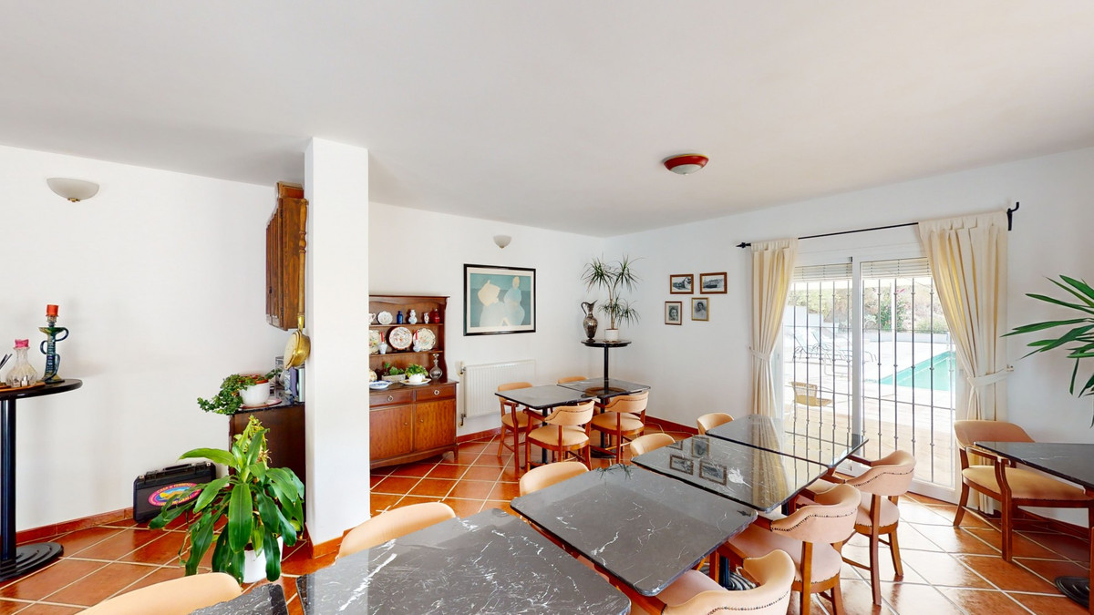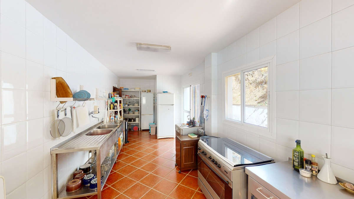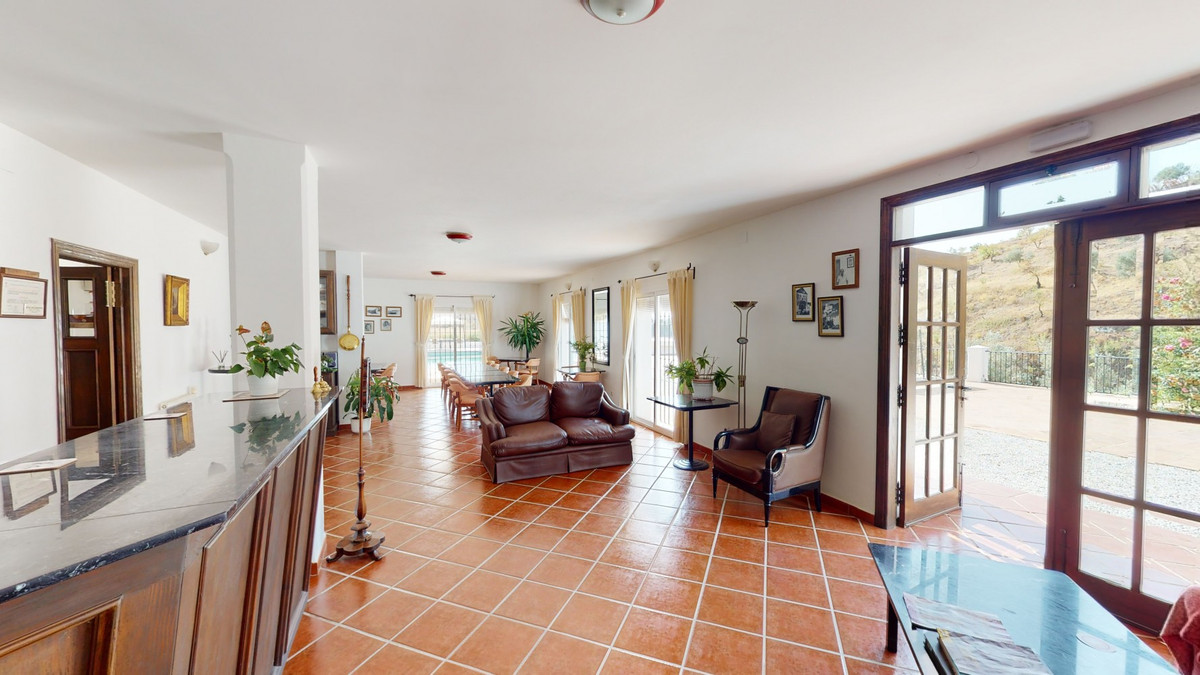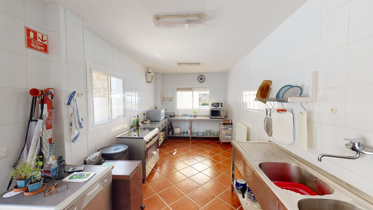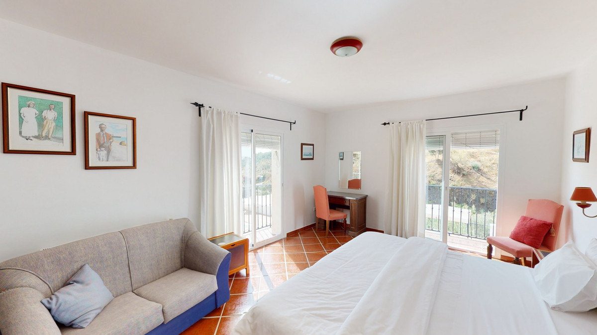 Wij presenteren u dit prachtige hotel/B&B vlakbij het charmante stadje Macharaviaya. Het perceel beslaat 18.313 m². Het hotel zelf heeft een oppervlakte van 500 m², perfect om uw droom van een B&B of hotel te verwezenlijken. Bij binnenkomst in het gebouw bevindt u zich in een ruime ruimte die dienstdoet als receptie, bar en eetruimte. Er zijn ook zitgedeeltes en twee toiletten. Aansluitend bevindt zich de volledig uitgeruste keuken met professionele apparatuur. Op de eerste verdieping bevinden zich twee kamers. Eén kamer is ontworpen voor mensen met beperkte mobiliteit. De deurpost is breed genoeg voor een rolstoel en er zijn handgrepen naast het toilet en het bad. De tweede kamer kan ook gebruikt worden als extra slaapkamer, kantoor, opslagruimte, enz. Naast de twee kamers bevindt zich een extra toilet voor de medewerkers. Een buitentrap leidt naar de grote, fantastische slaapkamers. Er zijn er vijf. Alle kamers hebben een eigen badkamer, inbouwkasten en sommige hebben een eigen terras. Ook in deze kamers vinden we brede deurposten. Je hebt een oprit of een stoellift nodig om met een rolstoel naar deze verdieping te komen. Deze accommodatie is volledig aan te passen aan mensen met beperkte mobiliteit. Buiten is er een zwembad van 12 x 6 meter. Ideaal om af te koelen op warme zomerdagen. Daarnaast is er een tuin, parkeergelegenheid voor meerdere auto's en een kleine kapel, die momenteel als opslagruimte wordt gebruikt. Hier zijn vele mogelijkheden om het te verbouwen. Het hotel biedt een fantastisch panoramisch uitzicht op de zee en het omliggende landschap. Mis de kans niet om deze unieke accommodatie te leren kennen en laat je inspireren hoe je het hotel naar jouw smaak kunt transformeren. We zijn blij om je binnenkort deze droomwoning te kunnen presenteren, persoonlijk of via een virtuele bezichtiging. Want deze wereld, die is uniek - net als onze Axarquía. In Andalusië. Aan de Costa del Sol. Hier, aan de zonnige kant van het leven...