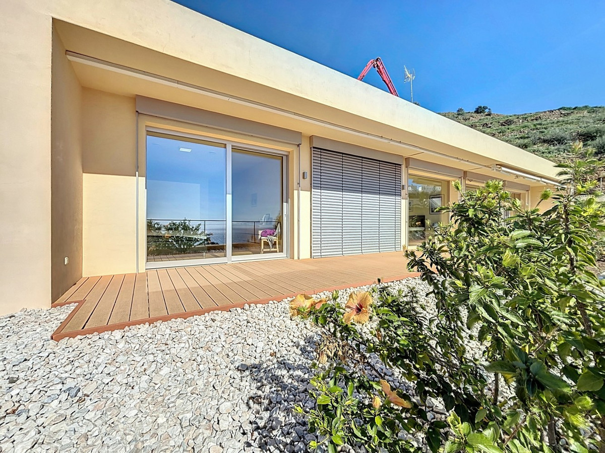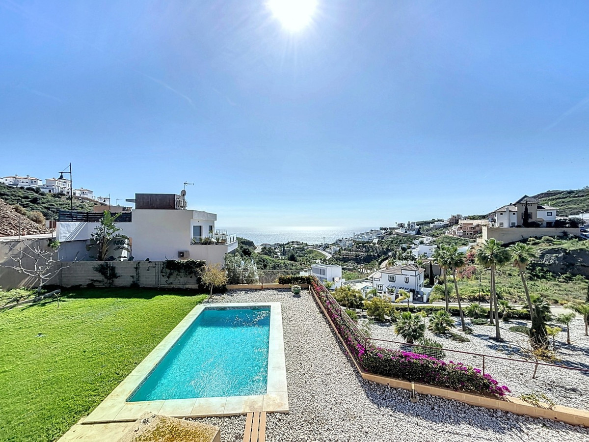 Deze luxe mediterrane villa in Torrox, Málaga, is verdeeld over twee verdiepingen en biedt een adembenemend uitzicht op zee. De woning is ontworpen met duurzaamheid in gedachten en is een echte energieneutrale woning, die het hele jaar door een comfortabele temperatuur behoudt dankzij de hoogwaardige isolatie en het comfortabele ventilatiesysteem. Zonnepanelen verhogen de energie-efficiëntie nog verder. Op de begane grond bevindt zich een open woonkamer met een strakke en moderne keuken, uitgerust met lichtgekleurde kasten en inbouwapparatuur. De ruime woonkamer is licht en luchtig en combineert binnen- en buitenruimtes naadloos door grote glazen deuren die uitkomen op een zonovergoten terras. Dit terras biedt een prachtig panoramisch uitzicht op de zee en het omliggende landschap en beschikt over een privézwembad, waardoor het een ideale plek is om buiten te eten en te ontspannen. De villa beschikt over drie goed ingerichte slaapkamers, waaronder een master suite met een en-suite badkamer. De overige twee slaapkamers delen een stijlvol ontworpen badkamer met moderne voorzieningen, zoals inloopdouches en zwevende wastafels. Een kantoorruimte met ingebouwde opbergruimte biedt een aparte ruimte om te werken of studeren. Een opvallend kenmerk van de woning is de toegankelijkheid. Een lift verbindt beide verdiepingen, wat comfort en gemak voor alle bewoners garandeert. De villa beschikt tevens over ruime opbergmogelijkheden, met ingebouwde kasten in de slaapkamers en extra georganiseerde ruimtes in het hele huis. Buiten versterkt de aangelegde tuin de mediterrane sfeer en biedt een serene rust. Een carport biedt veilige parkeergelegenheid. De woning is gelegen op twee bouwpercelen, waardoor er de mogelijkheid is om indien gewenst extra bij te bouwen. Deze villa, ontworpen door de huidige eigenaar, combineert unieke architectonische elementen en doordachte details die haar onderscheiden. Deze woning combineert mediterrane charme met moderne duurzaamheid en is een perfect toevluchtsoord in het hart van de Costa del Sol. We zijn verheugd u binnenkort deze droomwoning te kunnen presenteren, persoonlijk of via een virtuele bezichtiging. Want deze wereld is uniek - net als onze Axarquía. In Andalusië. Aan de Costa del Sol. Hier, aan de zonnige kant van het leven...