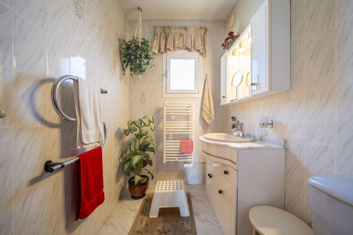 Bovenverdieping: hoofdslaapkamer met eigen badkamer en privéterras, plus een gastentoilet.