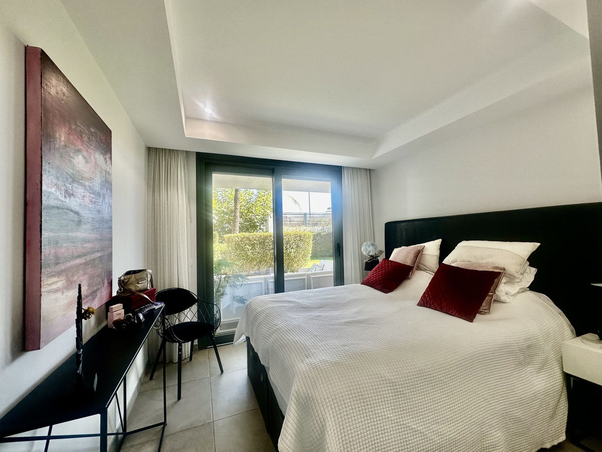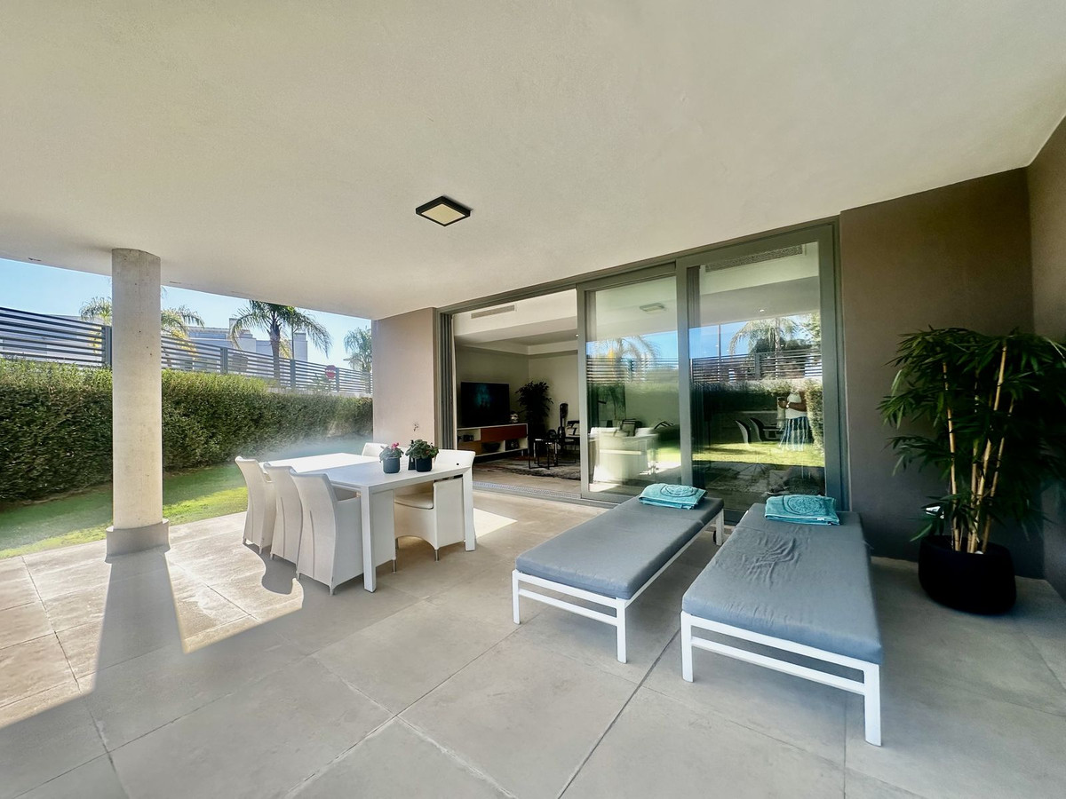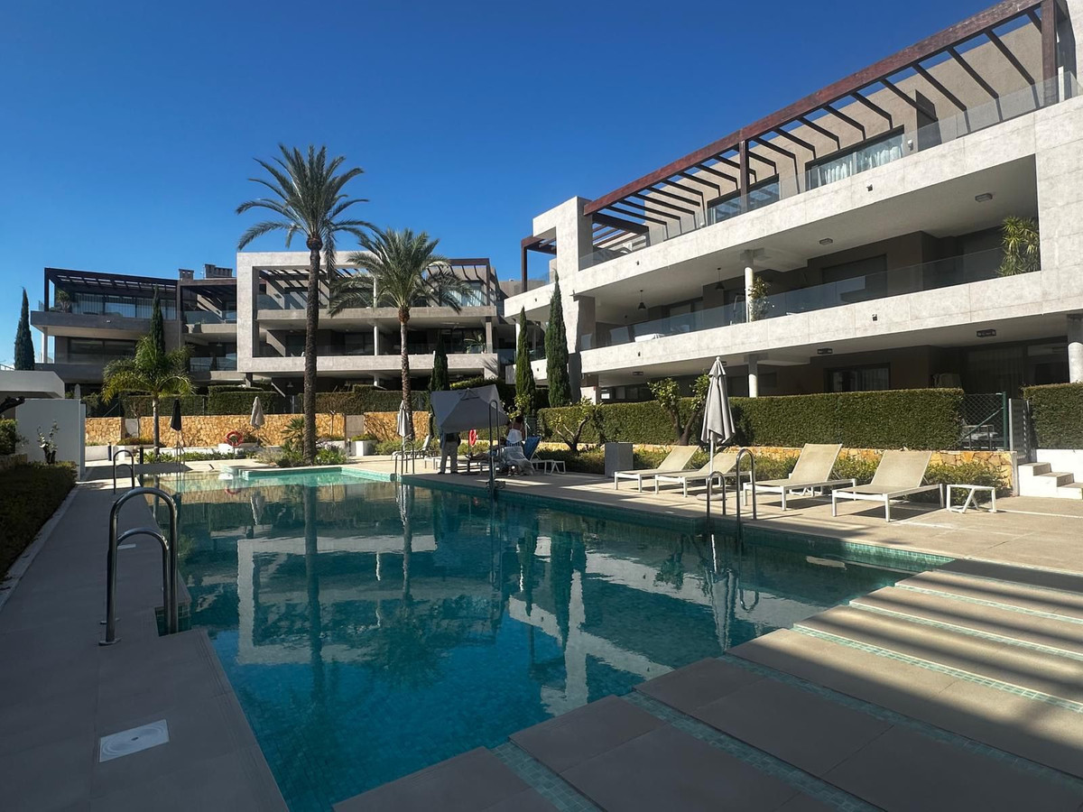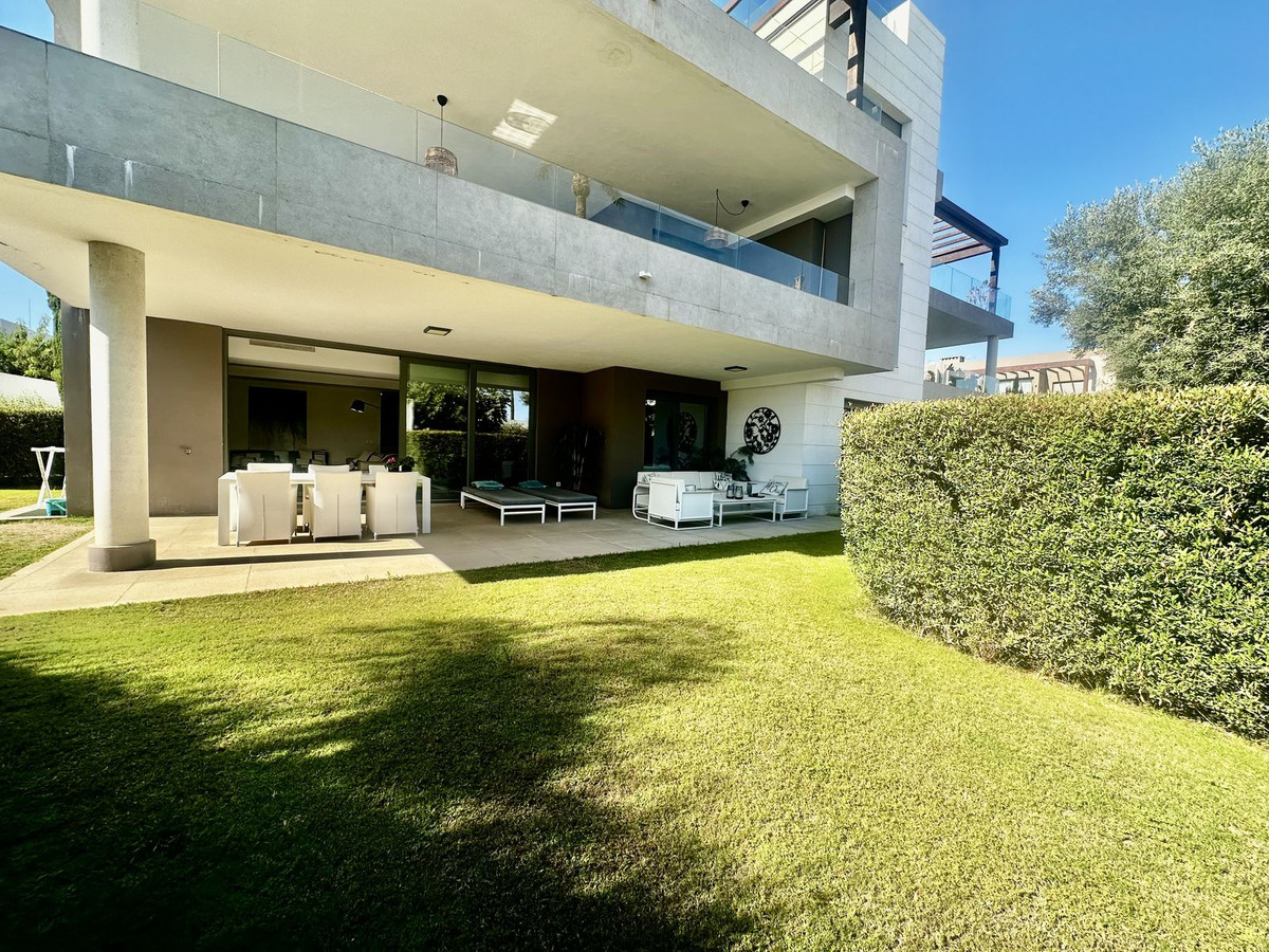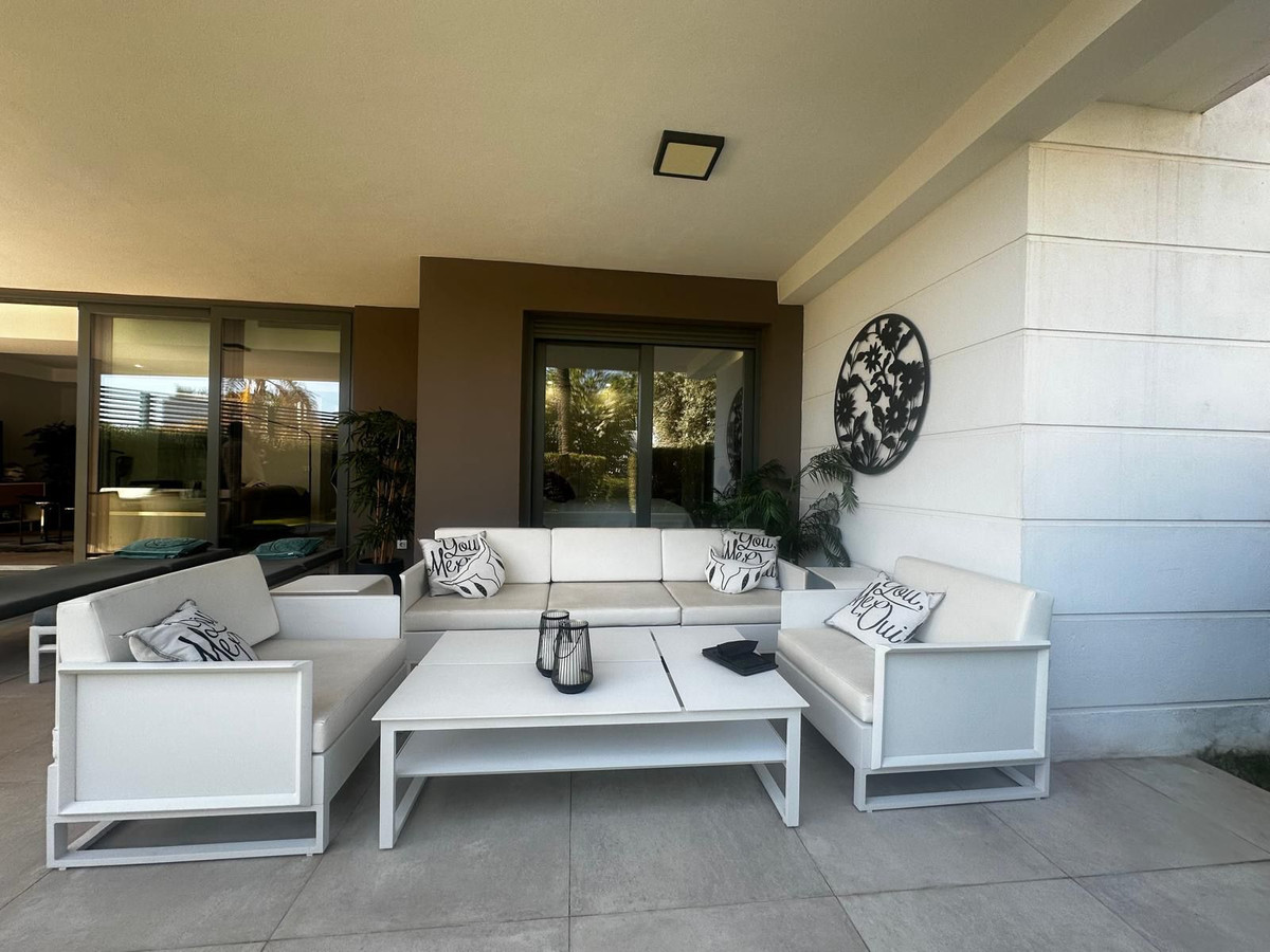 Modern en elegant appartement op de begane grond met 2 slaapkamers en 2 badkamers, gelegen in de gewilde wijk Cancelada (Estepona), op slechts 15 minuten van Marbella, 10 minuten van Puerto Banús en 5 minuten van het exclusieve Anantara Villa Padierna Hotel en de Flamingos Golfbanen.