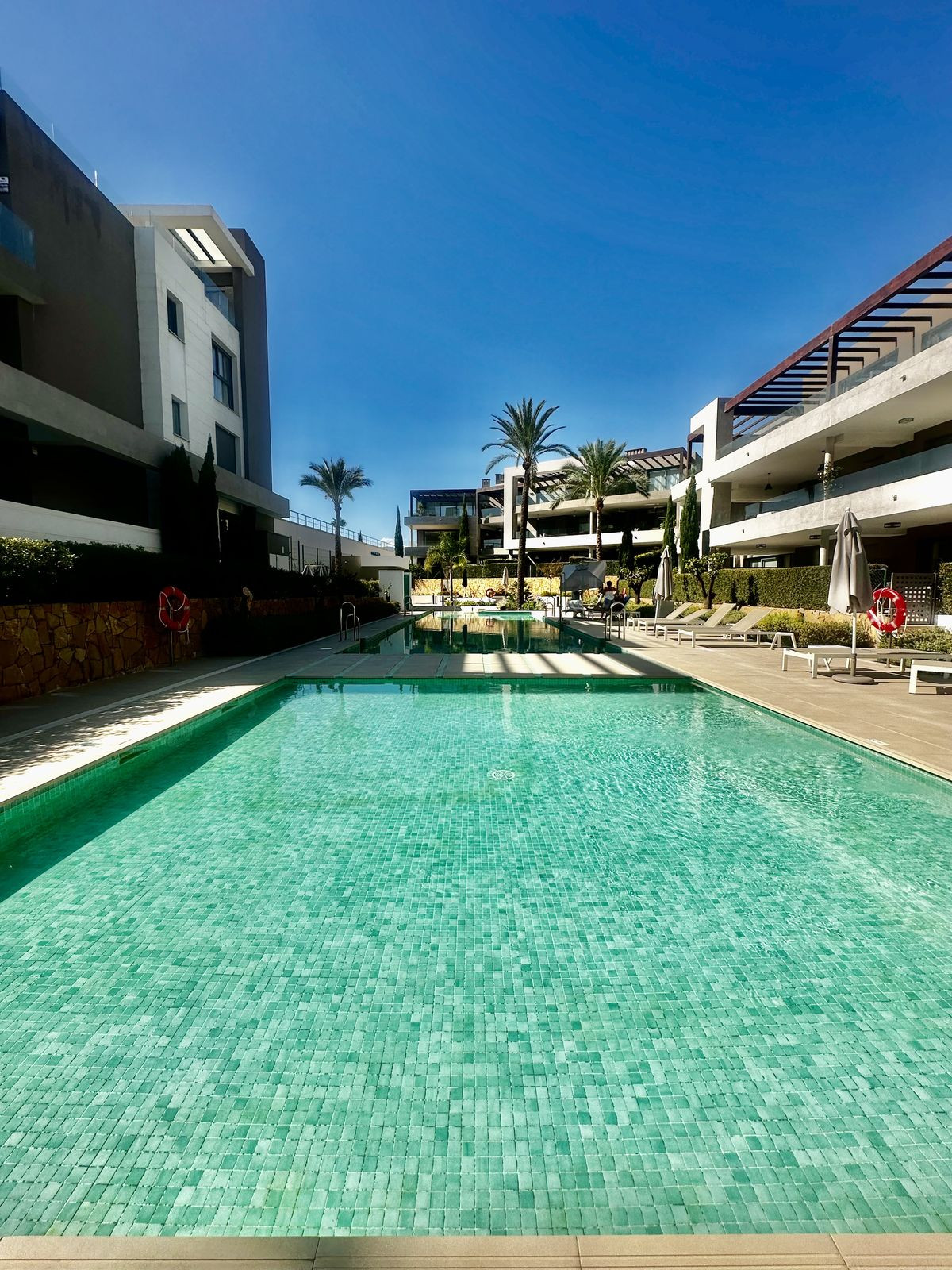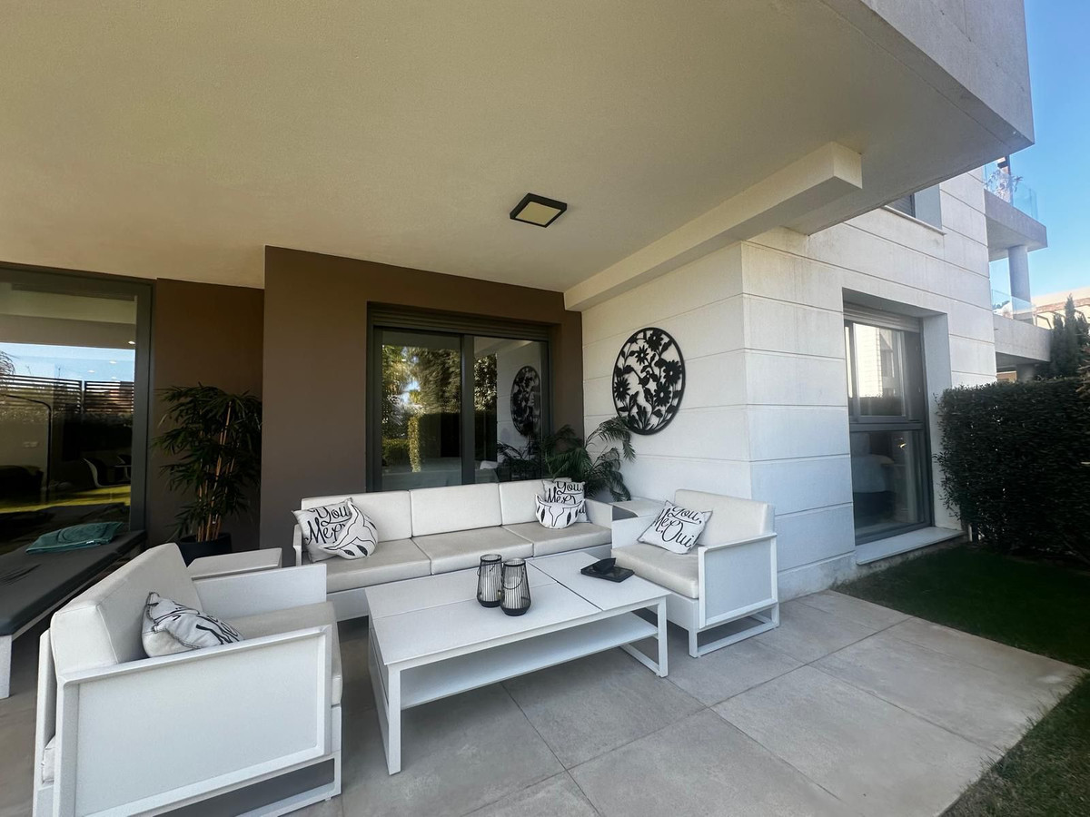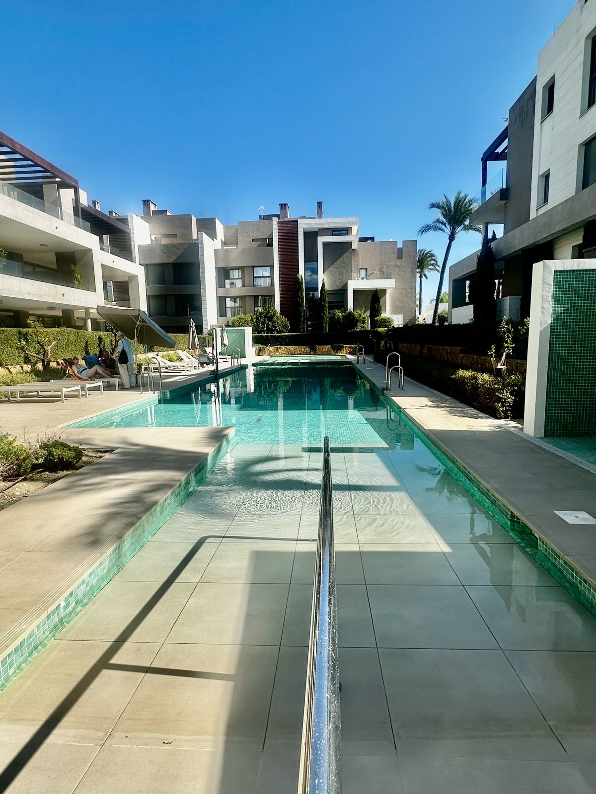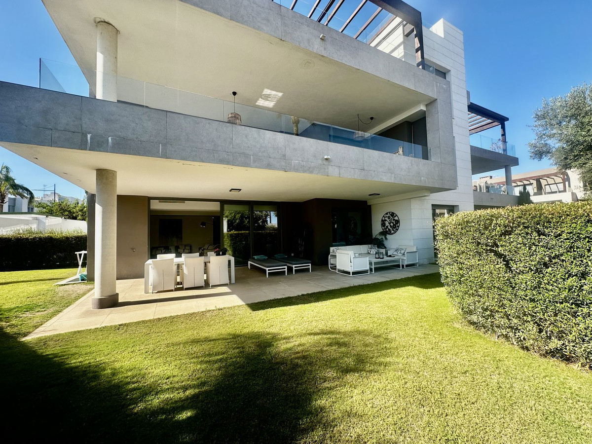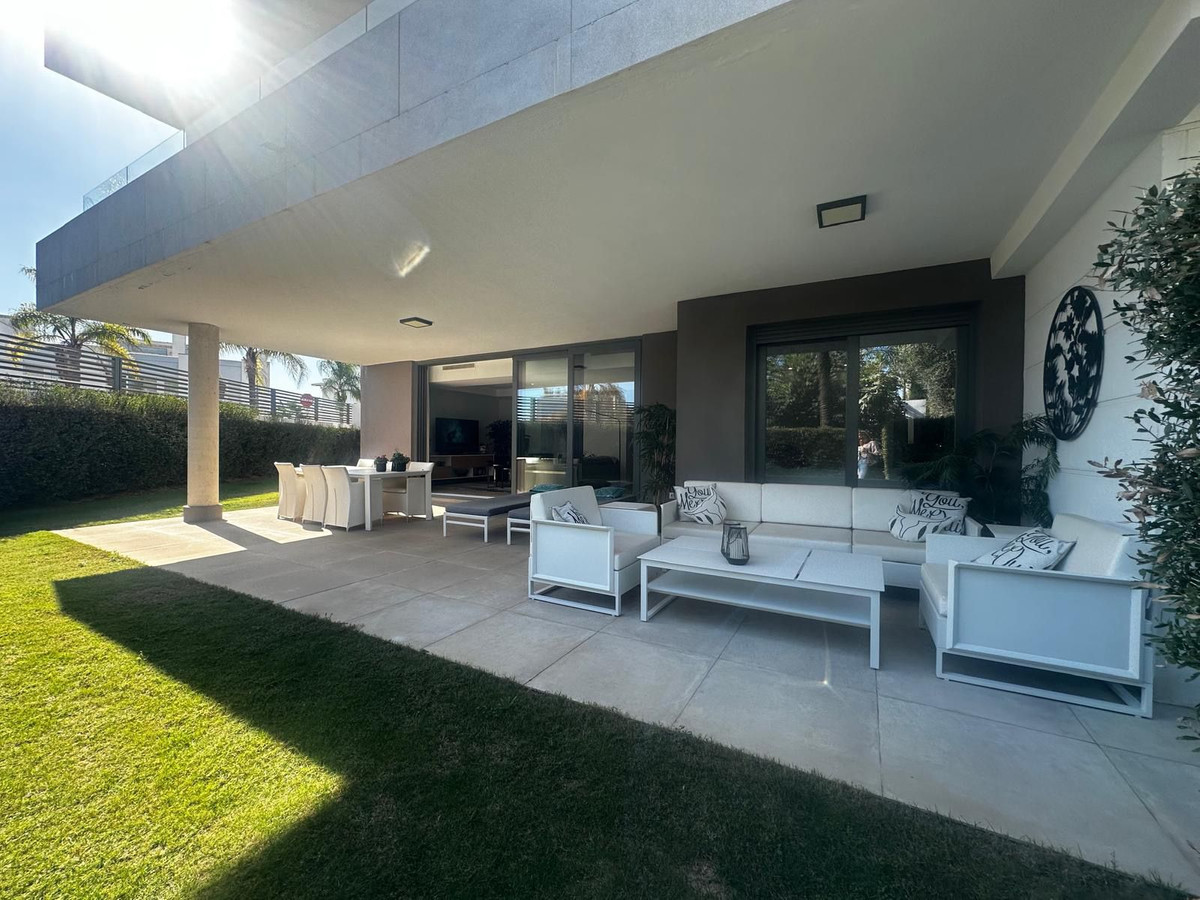 Modern en elegant appartement op de begane grond met 2 slaapkamers en 2 badkamers, gelegen in de gewilde wijk Cancelada (Estepona), op slechts 15 minuten van Marbella, 10 minuten van Puerto Banús en 5 minuten van het exclusieve Anantara Villa Padierna Hotel en de Flamingos Golfbanen.