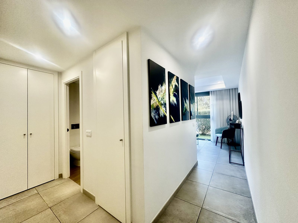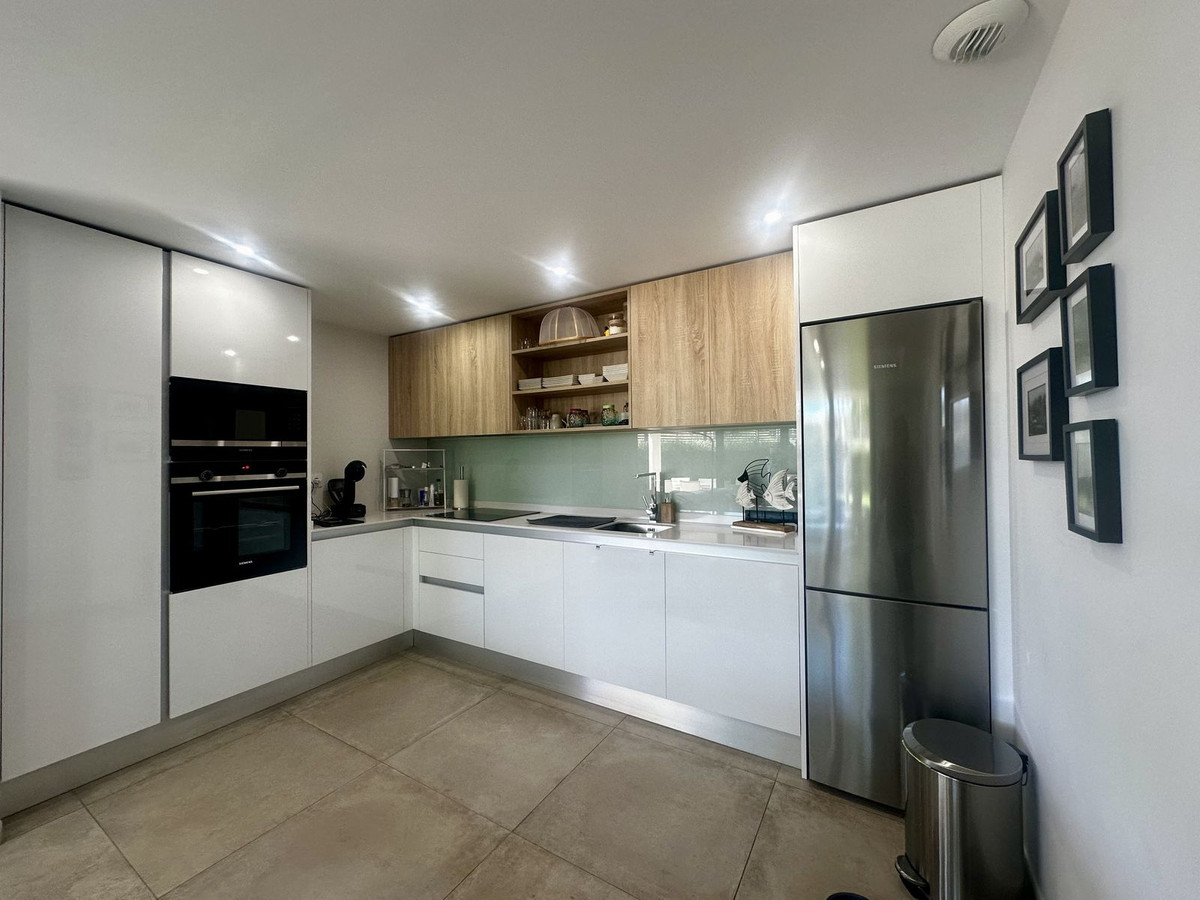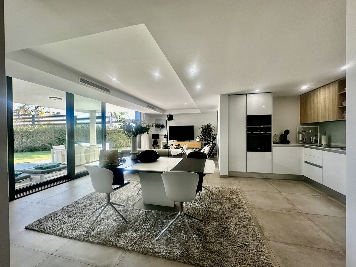 Het appartement heeft een bebouwde oppervlakte van 100 m², een overdekt terras van 50 m² en een privétuin van 120 m² voor exclusief gebruik. Het beschikt over een lichte open keuken die geïntegreerd is in de woonkamer en directe toegang tot het ruime terras, ideaal om te ontspannen of te genieten van bijeenkomsten in de buitenlucht.
