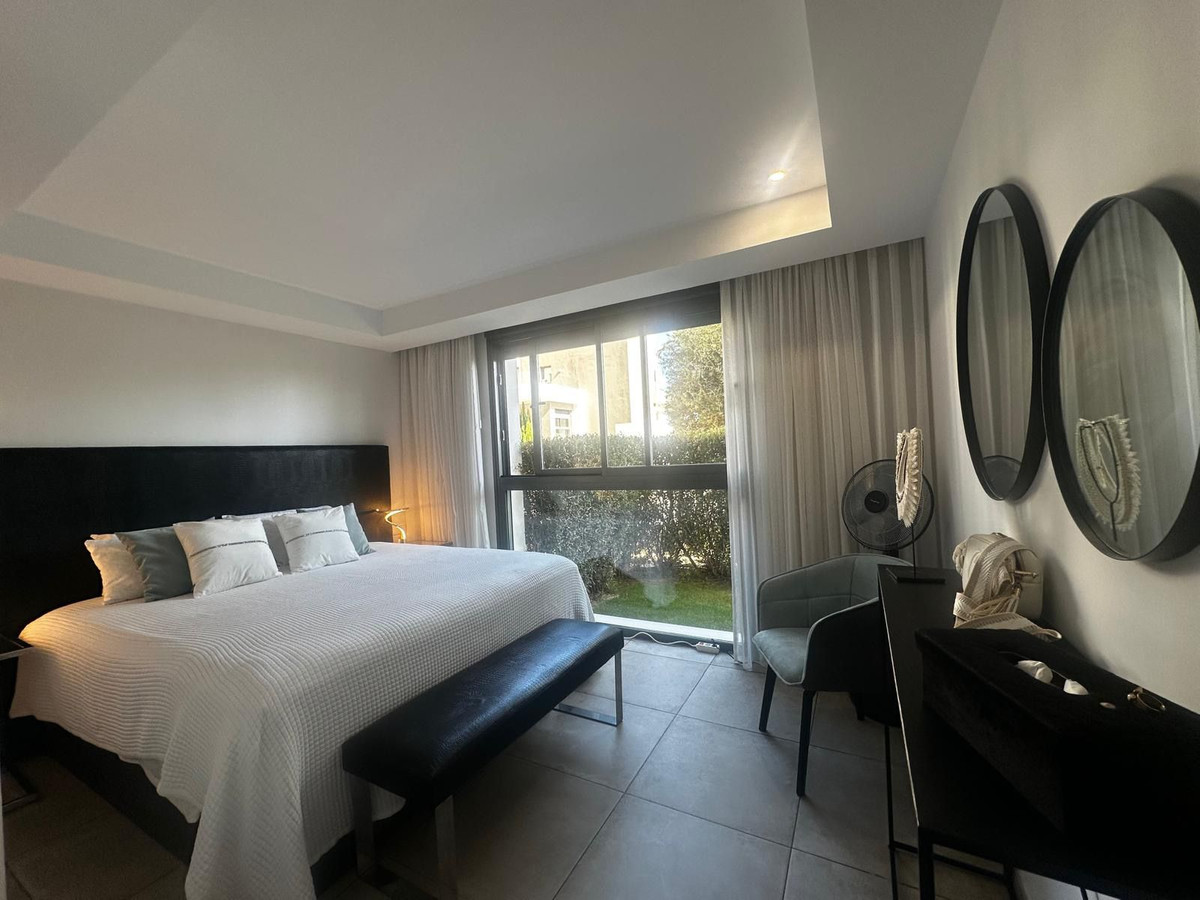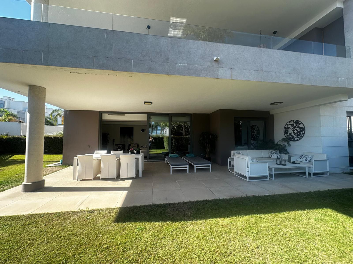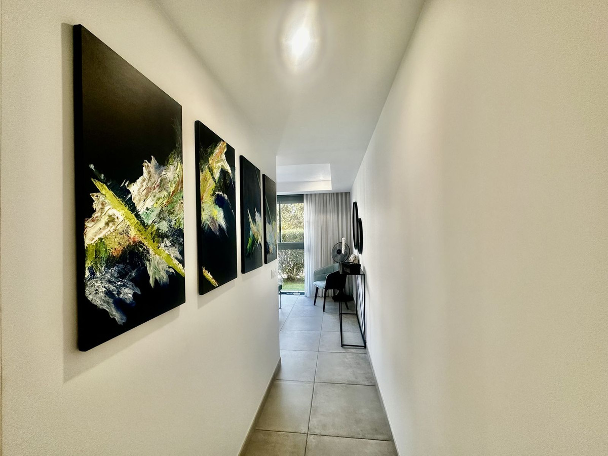 Het appartement heeft een bebouwde oppervlakte van 100 m², een overdekt terras van 50 m² en een privétuin van 120 m² voor exclusief gebruik. Het beschikt over een lichte open keuken die geïntegreerd is in de woonkamer en directe toegang tot het ruime terras, ideaal om te ontspannen of te genieten van bijeenkomsten in de buitenlucht.