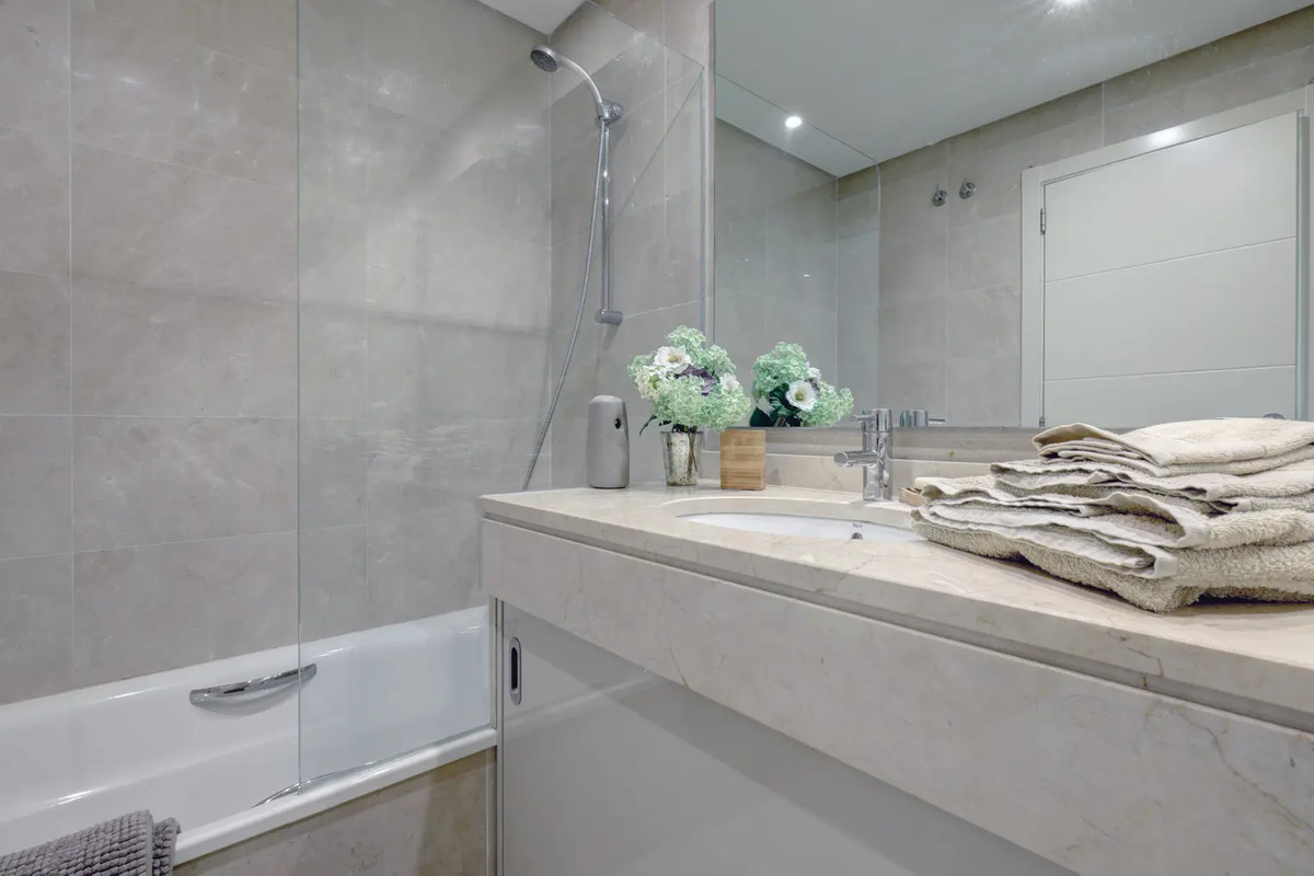 Het appartement is ontworpen met oog op comfort en functionaliteit en is volledig gemeubileerd. Het beschikt over een volledig ingerichte open keuken met moderne apparatuur. De woonruimtes zijn voorzien van airconditioning, centrale verwarming, dubbele beglazing en elektrische rolluiken, waardoor u het hele jaar door comfortabel kunt wonen. Extra voorzieningen zoals inbouwkasten, een berging en een eigen terras bieden voldoende ruimte en functionaliteit, terwijl het onoverdekte terras en het dakterras extra mogelijkheden bieden om buiten te genieten en te ontspannen.