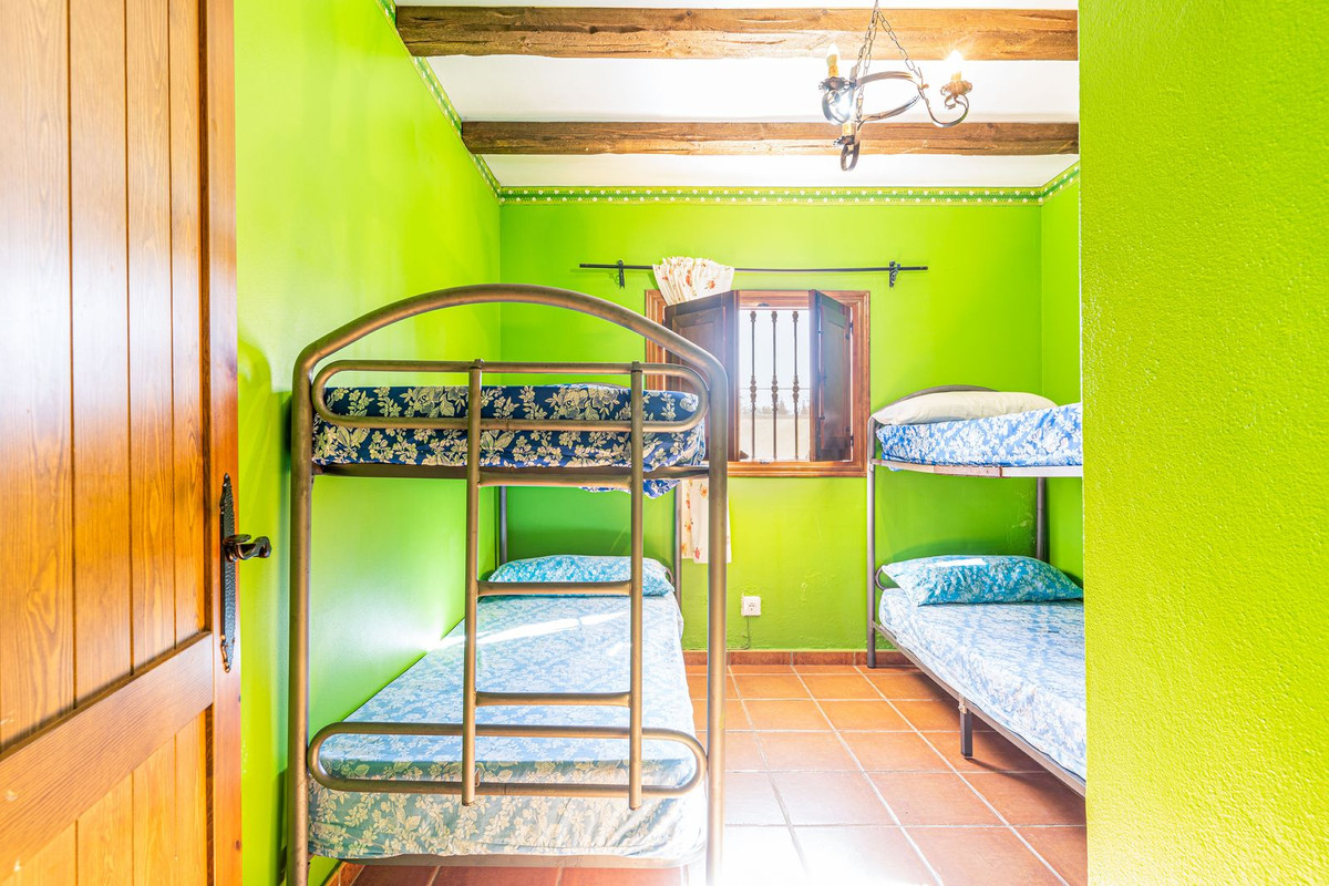 Binnen heeft de finca een traditioneel Andalusisch interieur, compleet met prachtige houten balken door het hele huis. De ruime aparte keuken is perfect om samen met het gezin te koken, terwijl de woonkamer met open haard warm en uitnodigend is. Buiten is er een omheind voetbalveld waar kinderen kunnen spelen, evenals een gedeelte met fruitbomen, waardoor het de perfecte plek is om van het buitenleven te genieten en te genieten van de Spaanse zon.