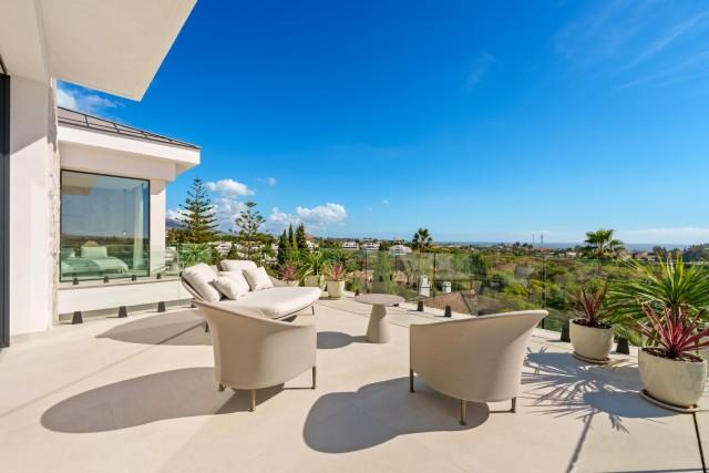 Deze uitzonderlijke moderne woning is gelegen in een exclusief, afgesloten complex op slechts enkele minuten van Marbella's meest prestigieuze bestemmingen. Gelegen tussen de glinsterende Middellandse Zee en de iconische berg La Concha, biedt de villa een adembenemend panoramisch uitzicht over de golfvallei, de natuurlijke landschappen en de kustlijn, en biedt volledige privacy en een diep gevoel van rust.