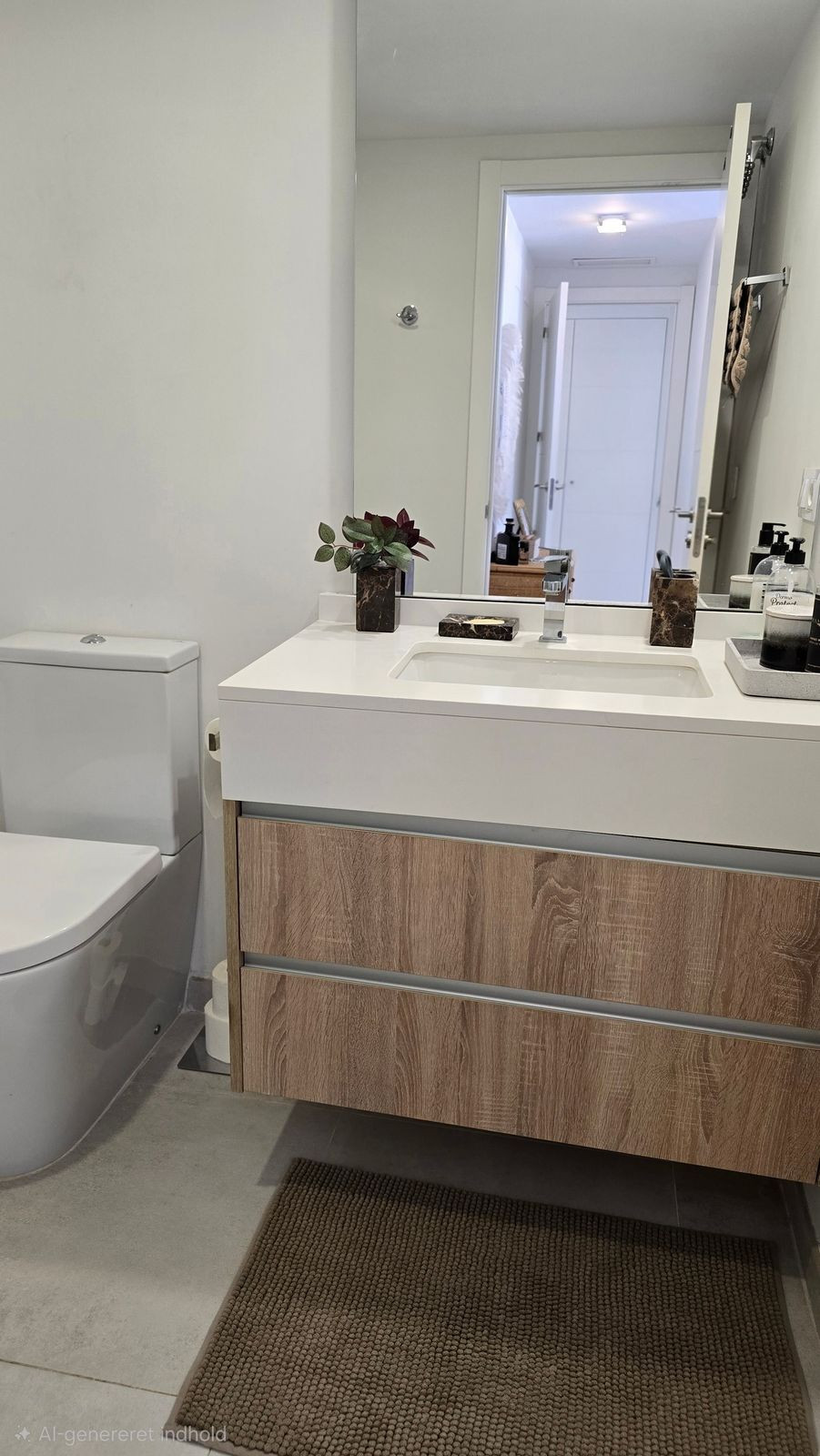 Beide slaapkamers zijn ruim van formaat, met een doordachte indeling die comfort en functionaliteit voorop stelt. De master suite biedt toegang tot het terras en een en-suite badkamer, terwijl de tweede slaapkamer privacy en flexibiliteit biedt, waardoor deze geschikt is voor gasten, familie of een thuiskantoor. De algehele staat van het interieur is uitstekend en omdat de woning volledig gemeubileerd wordt verkocht, kunt u er direct intrekken.