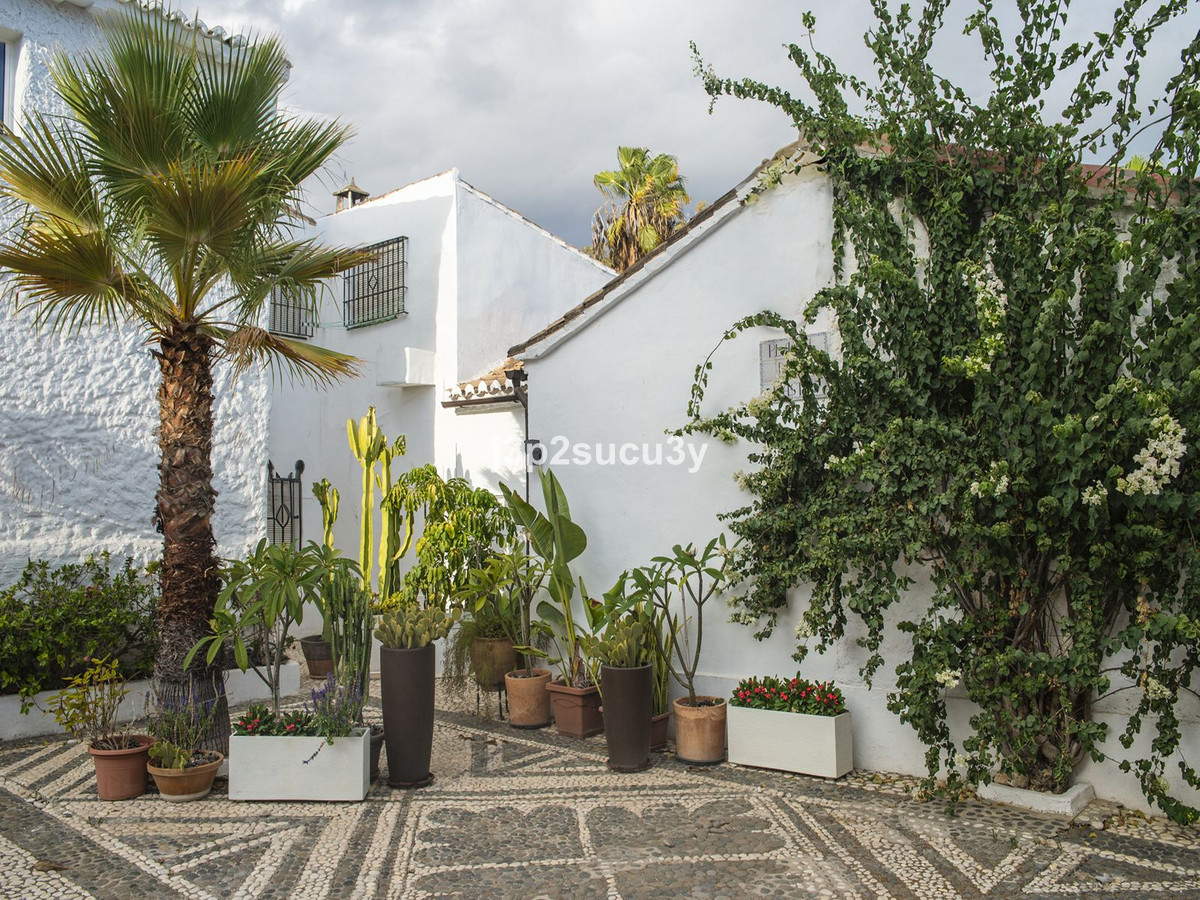 * Buitenruimte met bougainvillea, kleipotten en hoekjes die een authentiek Andalusisch dorp oproepen.