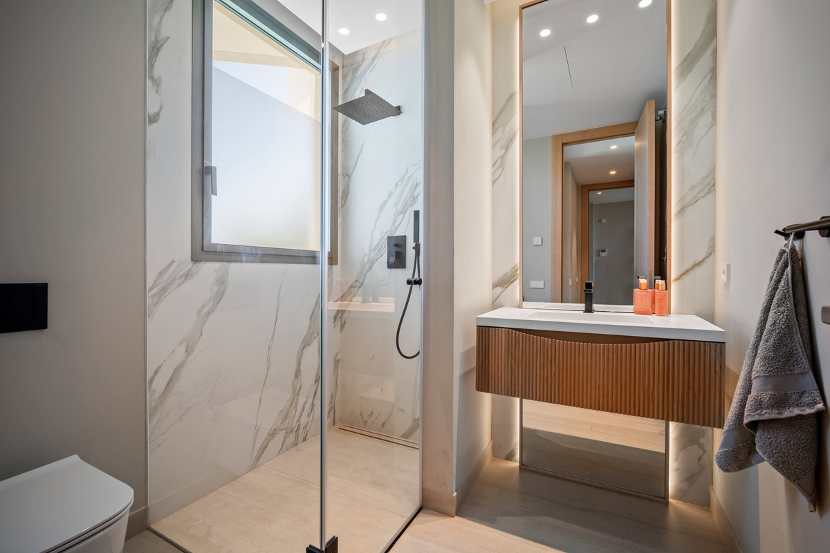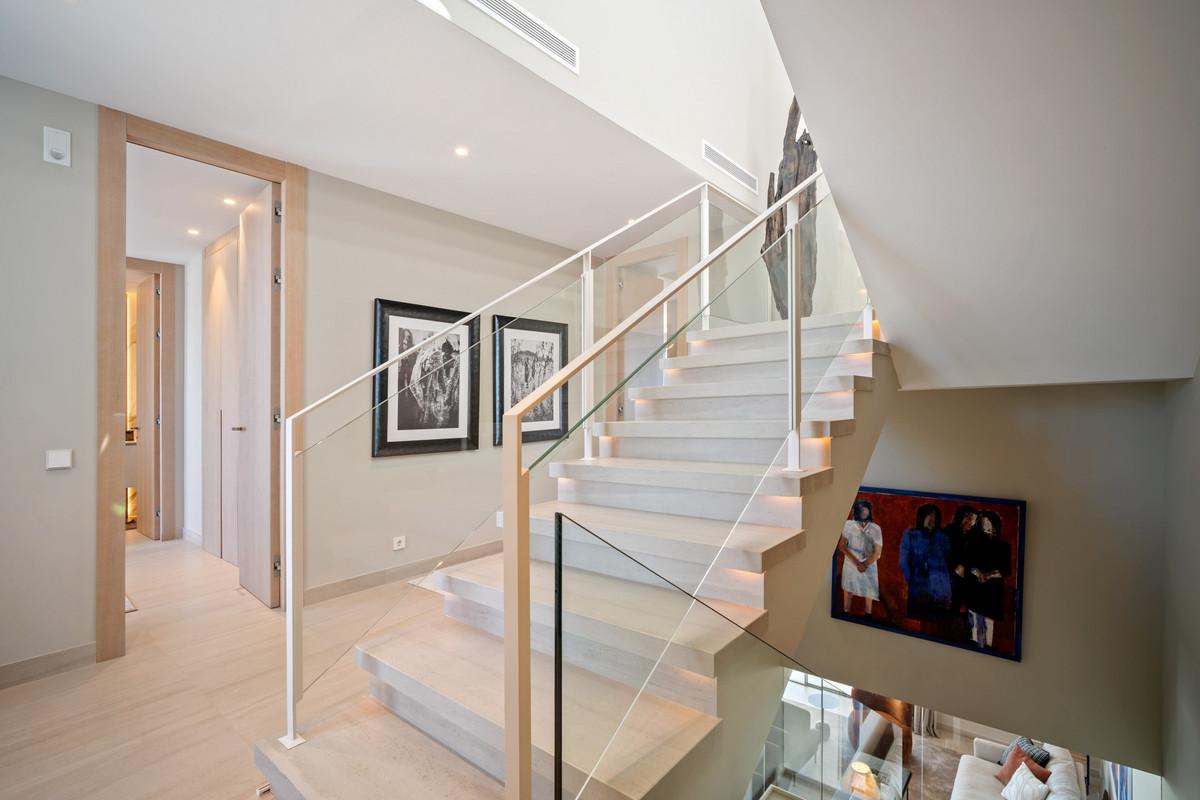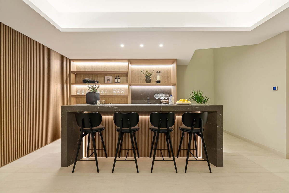 De residentie is ontworpen om de grenzen tussen binnen en buiten te vervagen en beschikt over een ruim overdekt terras, ideaal om te dineren en gasten te ontvangen met familie en vrienden. Het op maat gemaakte dakterras biedt een privézwembad en een adembenemend panoramisch uitzicht over de Middellandse Zee, Gibraltar, Afrika en de iconische berg La Concha in Marbella.