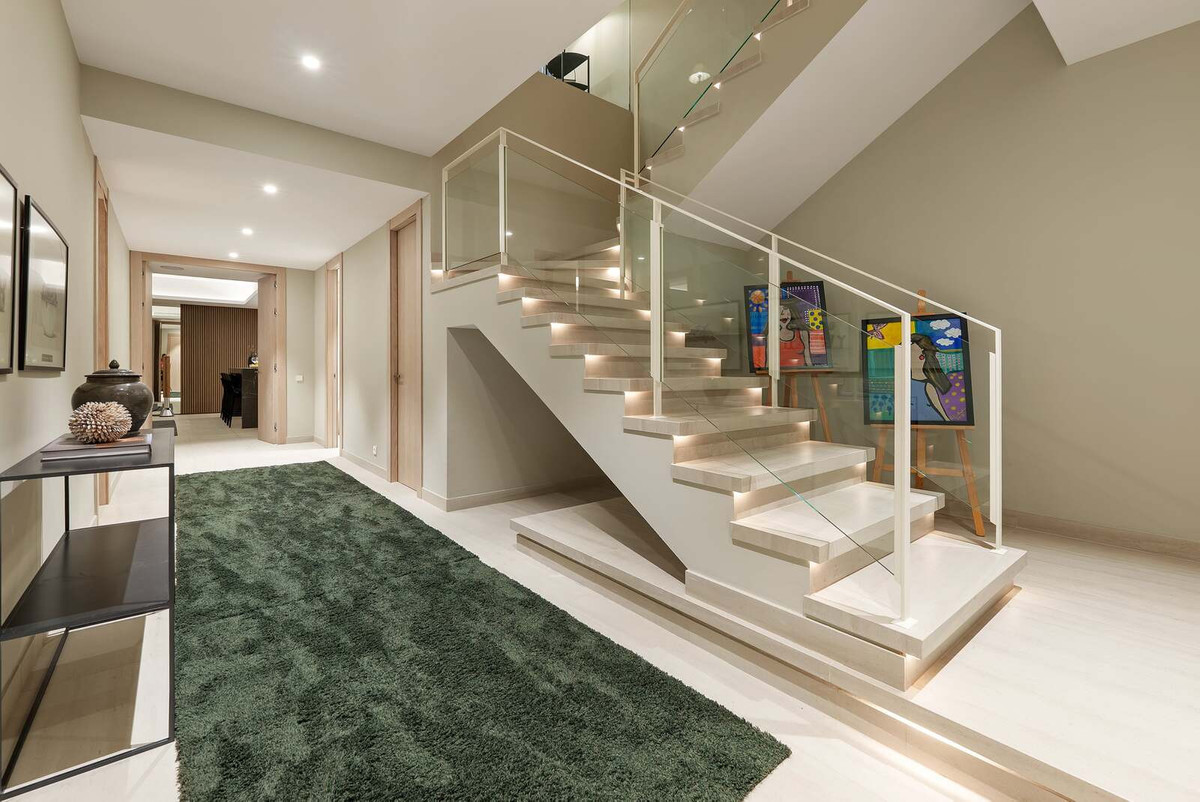 Verdeeld over vier luxe verdiepingen, verbonden door een privélift, straalt de woning zowel comfort als gemak uit. De strakke Siematic-keuken is volledig uitgerust met hoogwaardige apparatuur, terwijl vloerverwarming het hele jaar door comfort en energiezuinigheid garandeert. Geïntegreerde Bang & Olufsen-luidsprekers en tv's tillen de woonervaring naar een hoger niveau met tijdloze elegantie en superieur geluid.