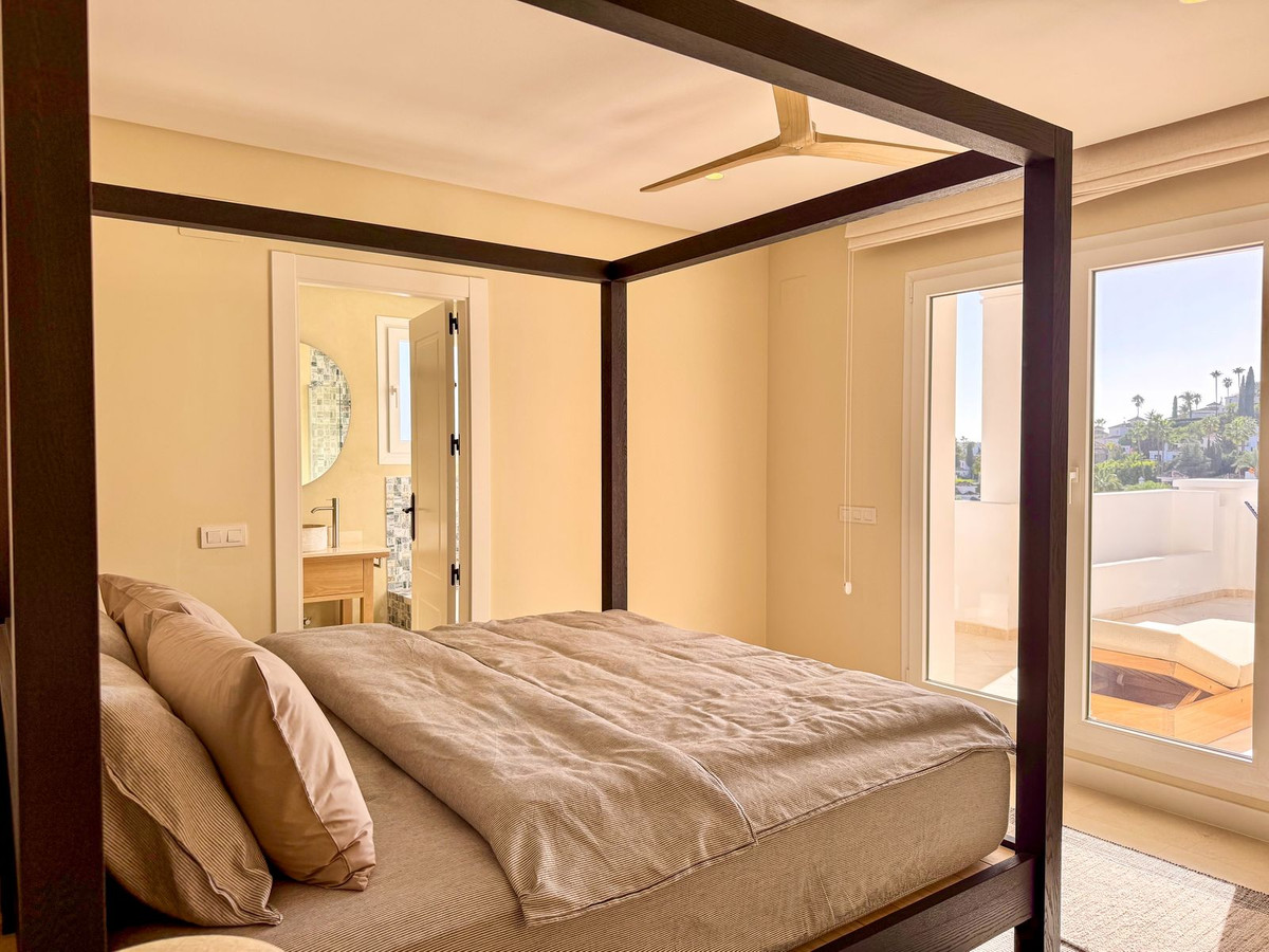 Dit prachtige, onlangs gerenoveerde appartement is gelegen in een van de meest gewilde wijken van Marbella: Nueva Andalucía, op slechts een steenworp afstand van de exclusieve Aloha Golf. Ontworpen met verfijnde elegantie en hoogwaardige materialen, biedt het een perfecte mix van modern comfort en een mediterrane levensstijl.