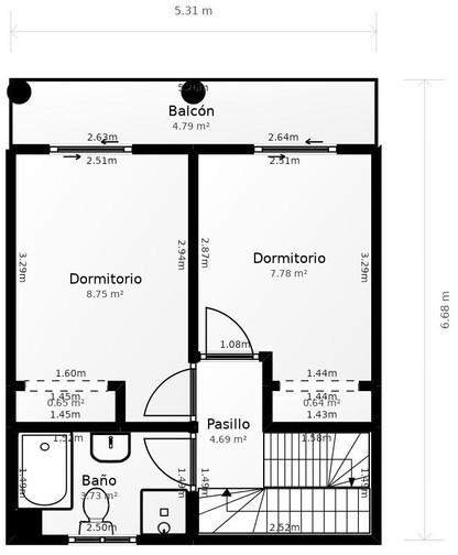 De woning beschikt over 3 slaapkamers en 2 badkamers verdeeld over drie verdiepingen. Op de begane grond vindt u de patio bij de hoofdingang en een tweede patio aan de zijkant, grenzend aan de keuken. Op deze verdieping bevinden zich ook de woonkamer, eetkamer en een ruime keuken.