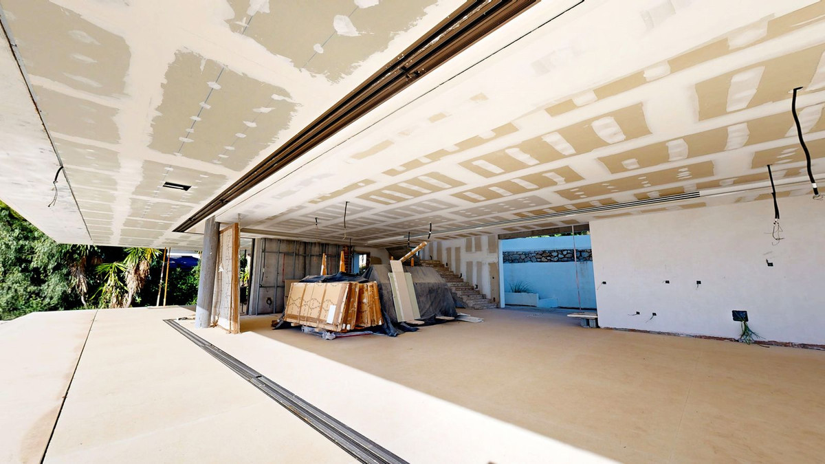 Wij presenteren een prachtige nieuwbouwvilla die luxe en ruimte een nieuwe definitie geeft. De huidige constructie omvat meer dan 600 m² woonoppervlak, verdeeld over drie ruime verdiepingen, allemaal gelegen op een uitgestrekt privéperceel van meer dan 2.000 m². Deze configuratie biedt niet alleen ruimte, maar ook een adembenemend panoramisch uitzicht over de Middellandse Zee.